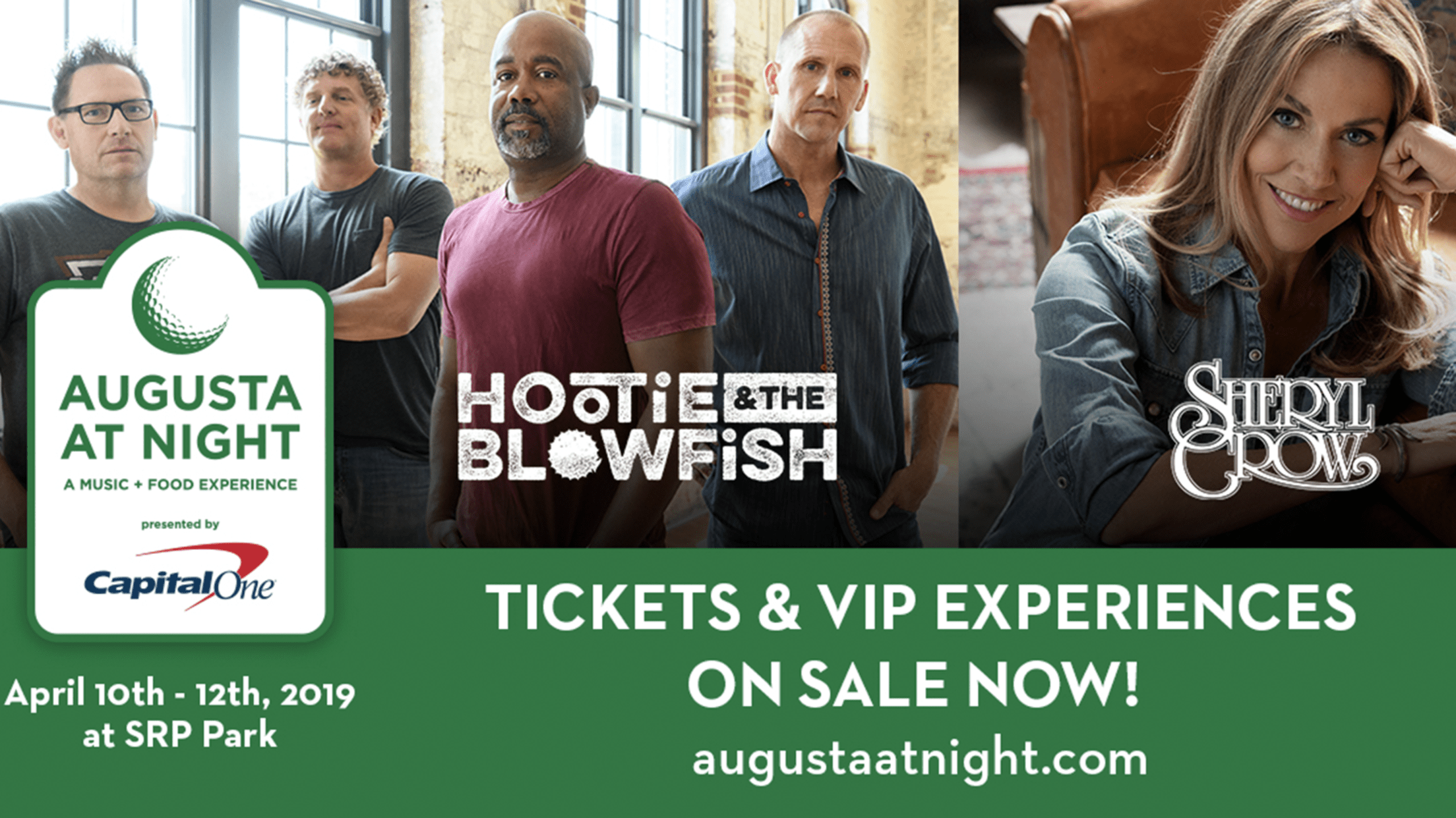 Augusta at Night presented by Capital One will feature a concert with American music icon Sheryl Crow opening the night followed by iconic pop-rock band Hootie & The Blowfish headlining the event ahead of their 2019 Group Therapy Tour.