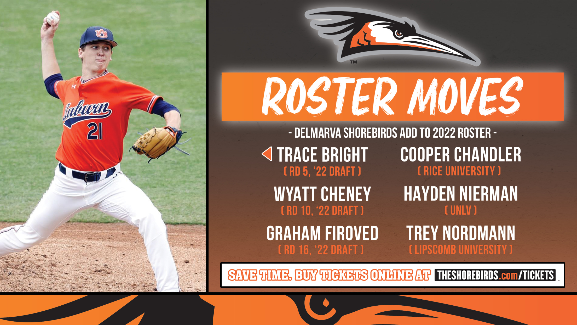 Headlining the group are Orioles 5th Rd. pick RHP Trace Bright out of Auburn and Orioles 10th Rd. pick Wyatt Cheney out of McLennan CC. Also joining the Shorebirds is RHP Graham Firoved (16th Rd., Virginia Tech) and undrafted free agents Cooper Chandler (Rice), Hayden Nierman (UNLV), and Trey Nordmann (Lipscomb).