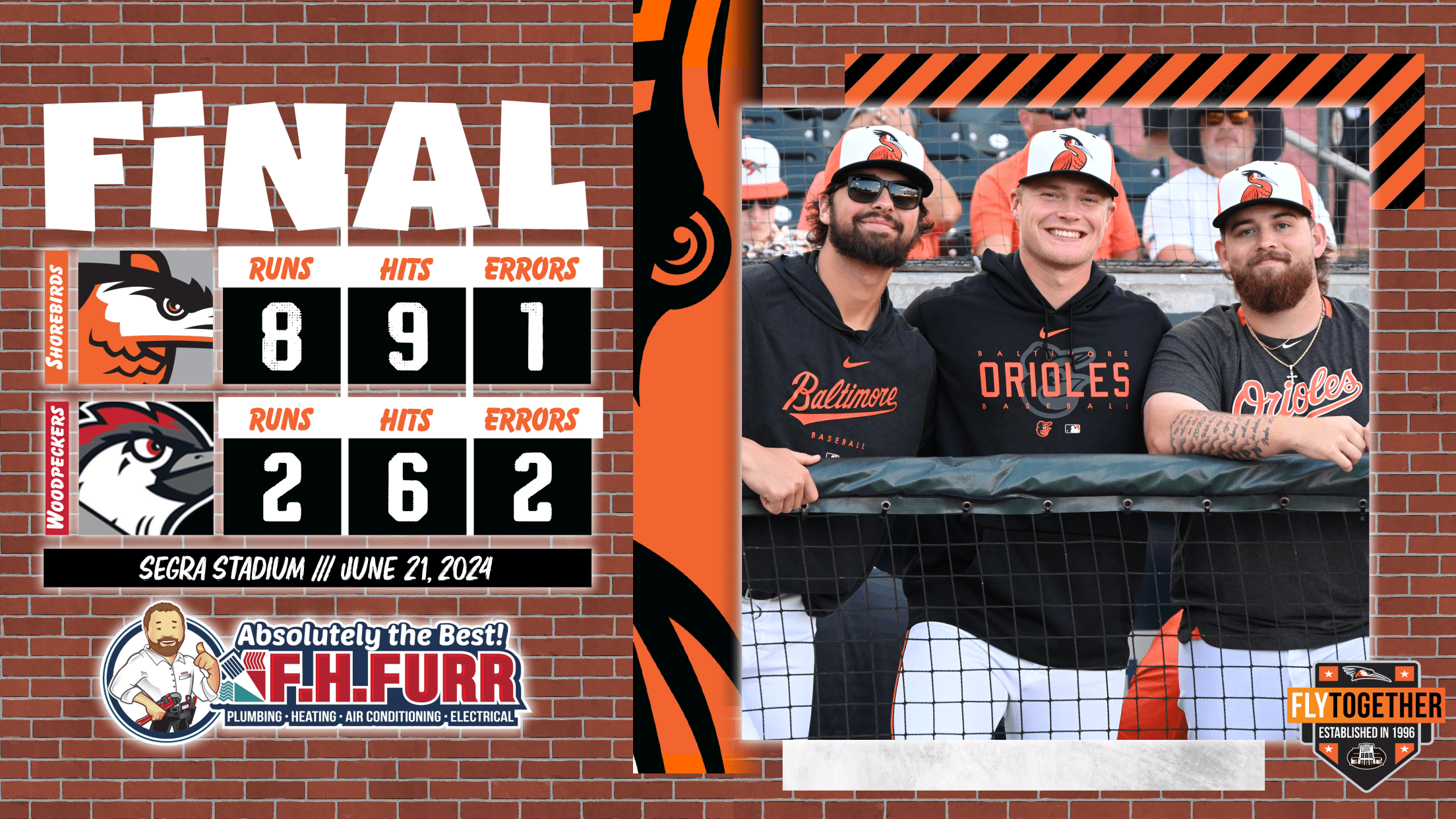 The Shorebirds delivered with two outs again in the ninth with an RBI double by Aneudis Mordán, and a run scoring-single that scored Mordán one pitch later from Jake Cunningham, helping Delmarva match its largest lead of the night at 8-2.