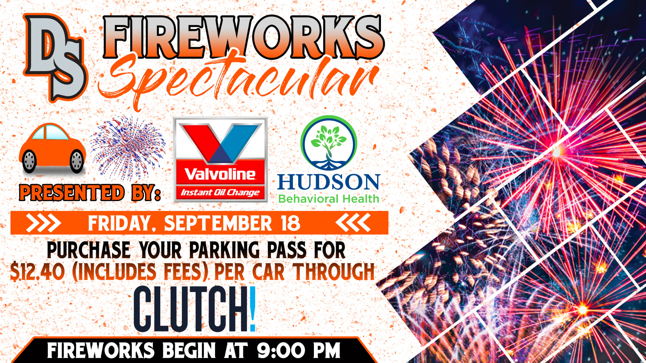 SALISBURY, Md. -- The Delmarva Shorebirds are excited to announce that we will be hosting our 2nd Drive-In Fireworks Spectacular on Friday, September 18 presented by Valvoline Instant Oil Change & Hudson Behavioral Health. The Fireworks will take place at Arthur W. Perdue Stadium where cars will be parked socially distanced with the parking lot opening at 7:30 PM and the fireworks show beginning at approximately 9:00 PM.