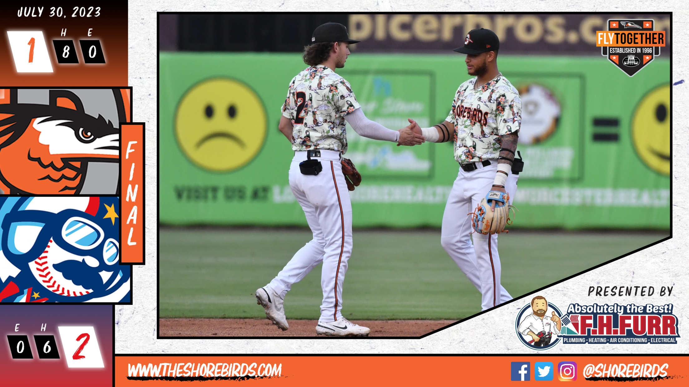 *KANNAPOLIS, NC: *The Delmarva Shorebirds (12-17) fell one run short to the Kannapolis Cannon Ballers (16-14) on Sunday afternoon by a score of 2-1.
