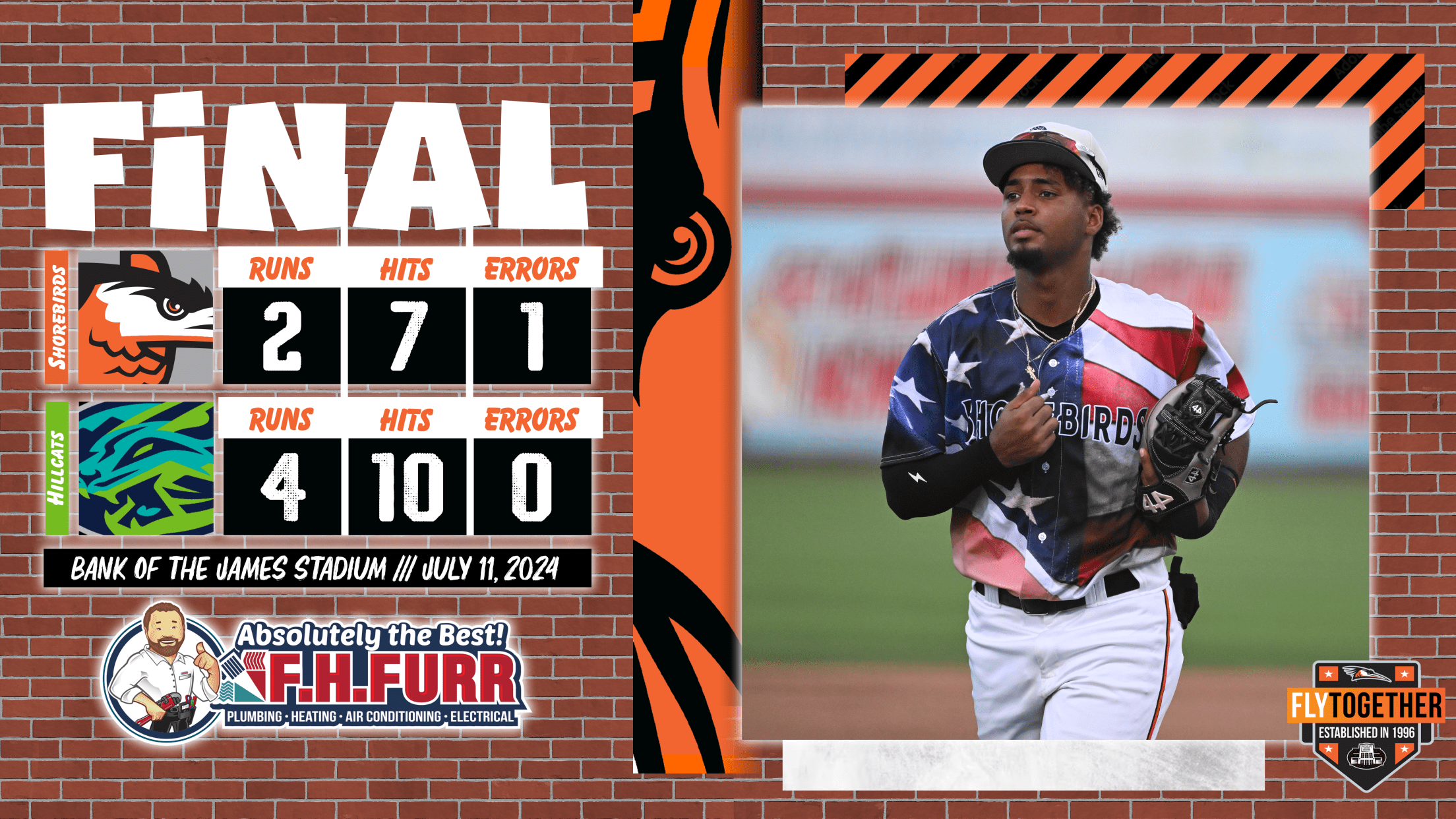 The Shorebirds' offense was shut down in the final two innings by Steven Perez and would fall to the Hillcats 4-2, giving Lynchburg their first win of the series.
