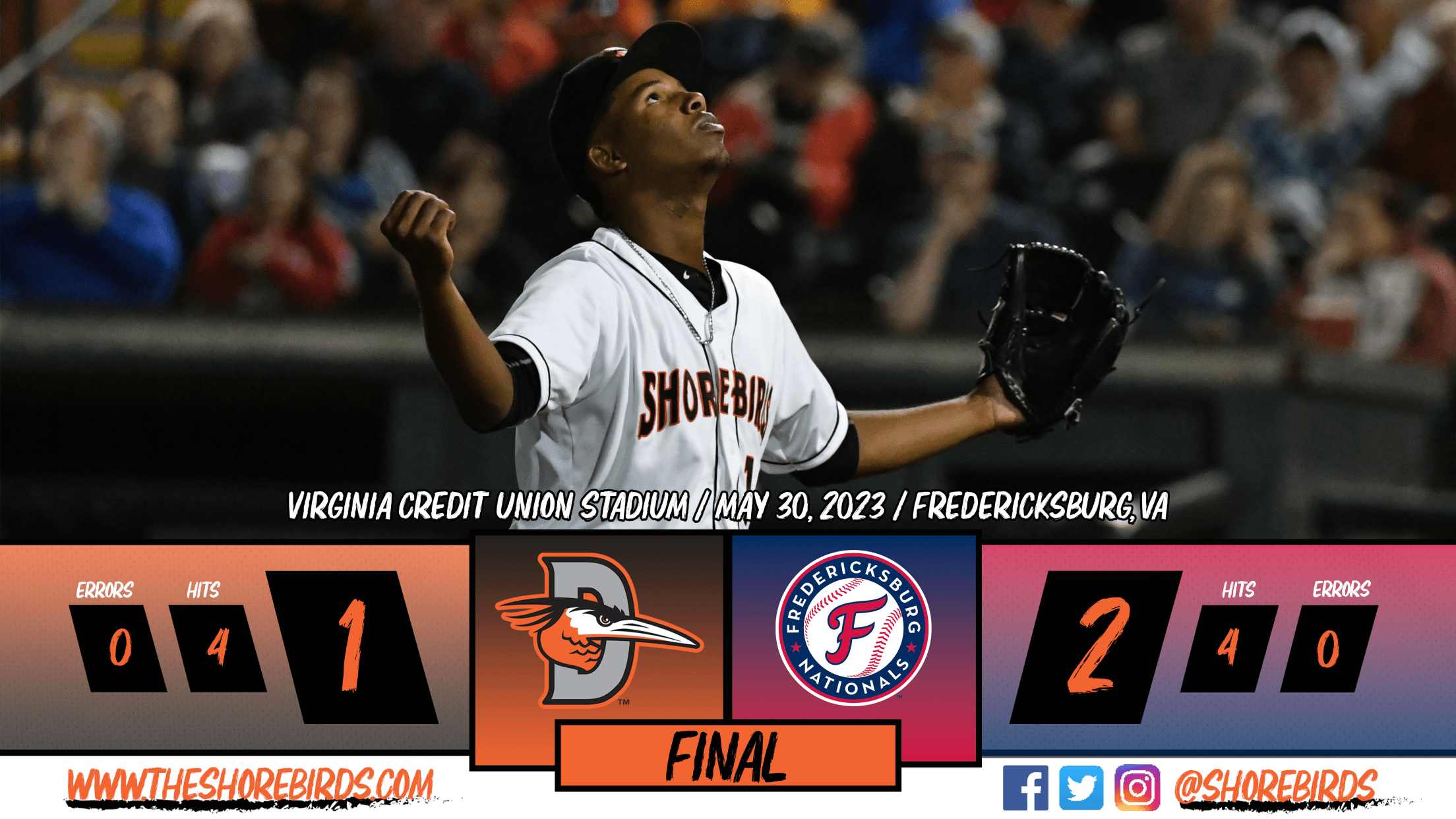The Shorebirds will now look to bounce back on Wednesday night with Juan Nuñez taking the mound to face Riley Cornelio for the Nationals with first pitch at 7:05 p.m.