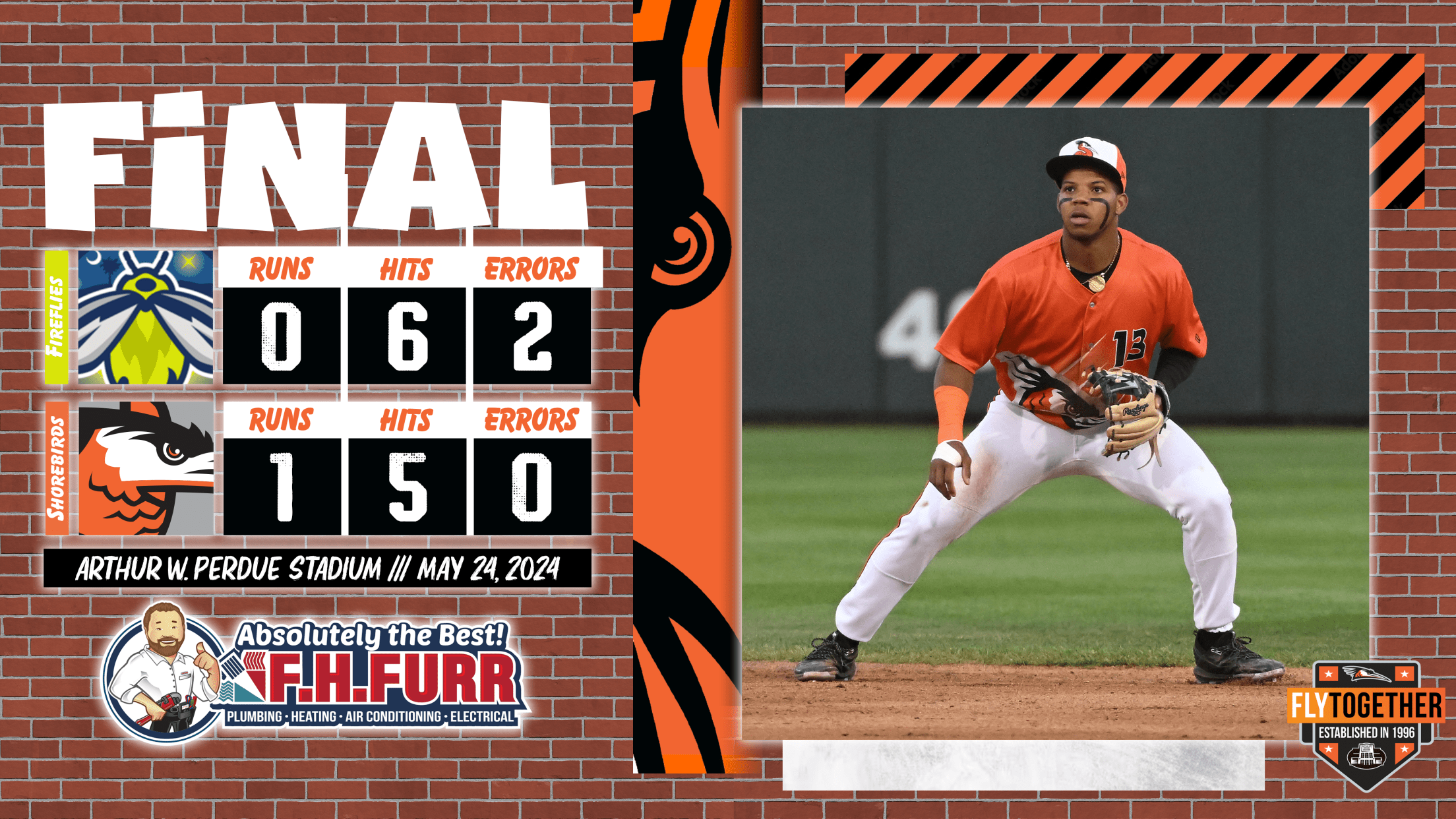 SALISBURY, MD: The Delmarva Shorebirds (15-27) outlasted the Columbia Fireflies (21-20) on Friday night by a score of 1-0 in ten innings.