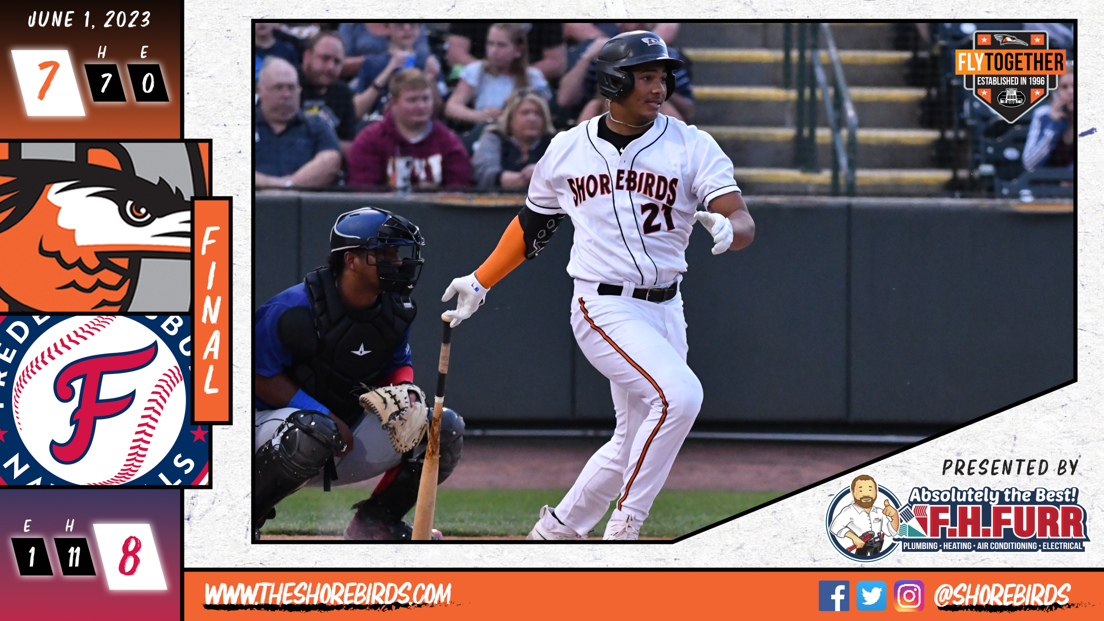 The game would then head to extras after Yaqui Rivers struck out the side in the ninth. In the tenth, the Shorebirds failed to score and the Nationals took advantage as Armando Cruz doubled off the right field wall to score the winning run, sinking Delmarva to their fifth straight defeat as the Fred Nats won 8-7.