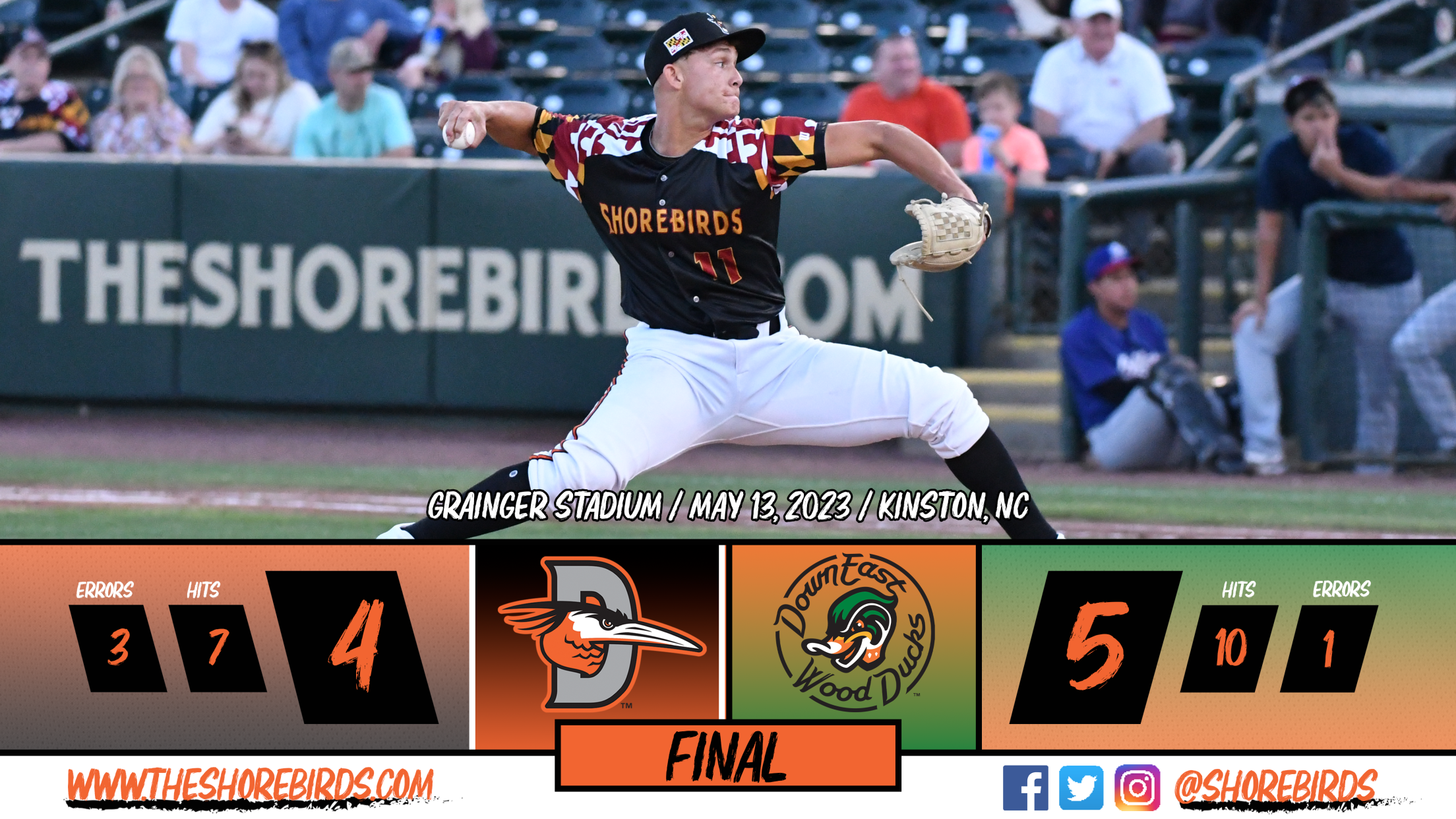 Shorebirds Walked Off by Wood Ducks in Game 5 Down East Snatches Victory Away from Delmarva in the Ninth KINSTON, NC: The Delmarva Shorebirds (16-14) suffered a heartbreaking walk-off defeat at the hands of the Down East Wood Ducks (18-12) on Saturday night by a score of 5-4. Stiven Acevedo