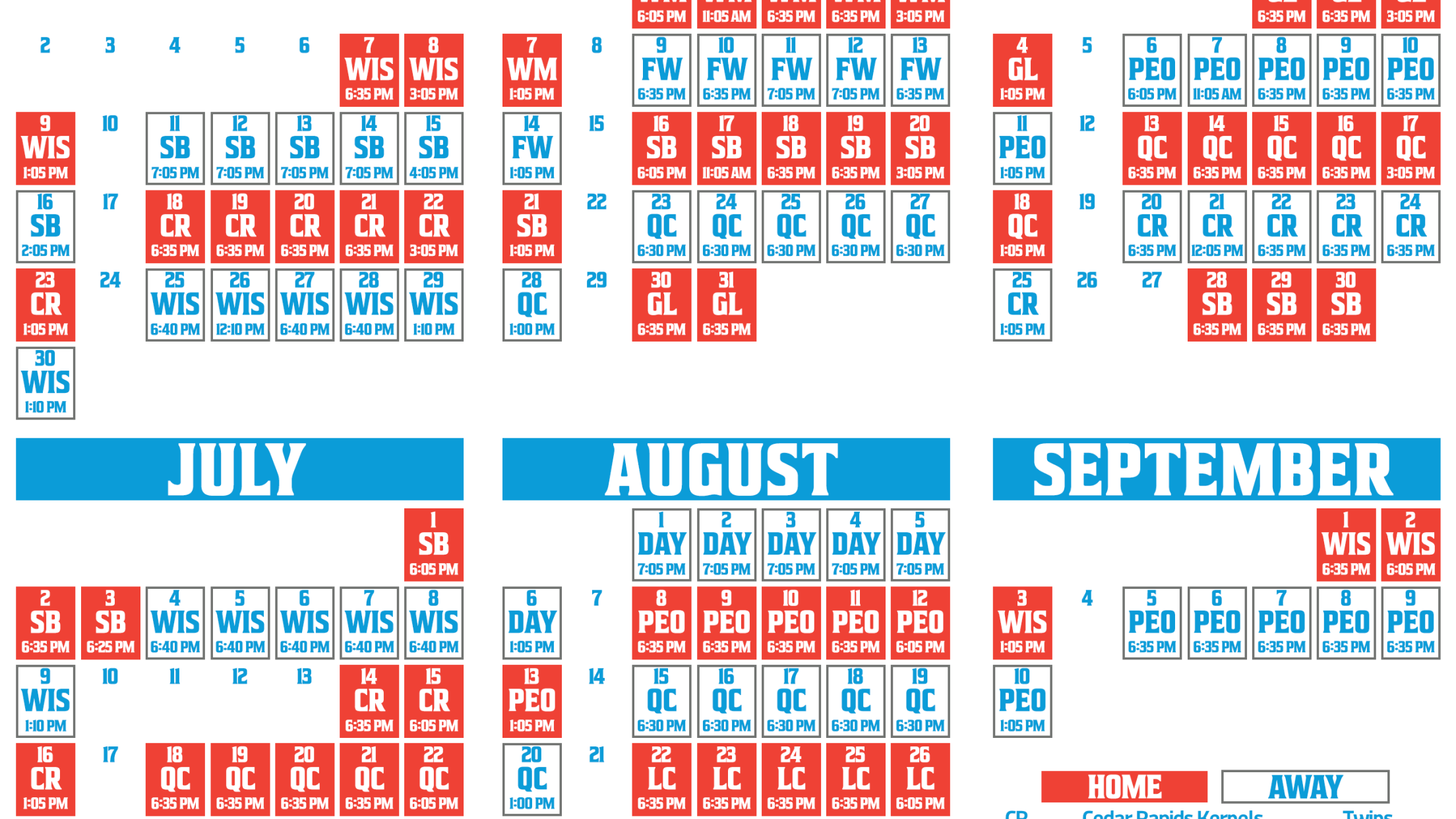 Other highlights of the home schedule include a 12-game homestand that will again feature the Timber Rattlers to conclude the season.