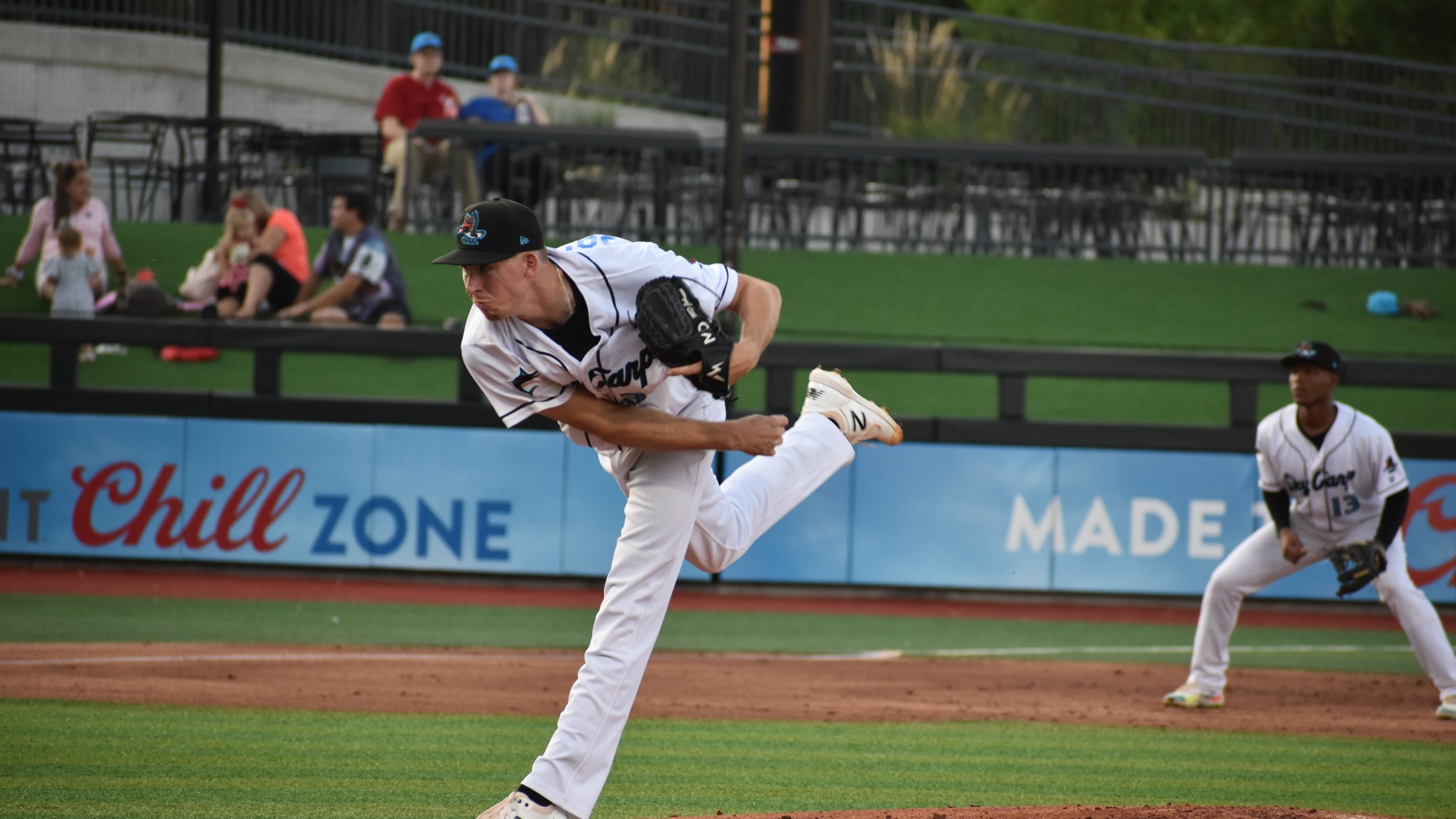 Sky Carp starting pitcher M.D. Johnson, the Midwest League’s leader in ERA, lived up to his billing. Johnson allowed only two hits, one of them being a solo home run from Tommy Jew, in six innings. He didn’t walk a batter and struck out three Chiefs.