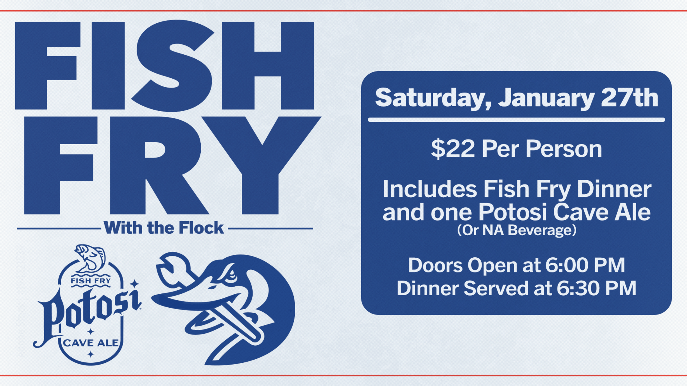 “This event gives our amazing food and beverage team a chance to shine, and it also gives our fans a chance to take advantage of our great facility in the winter,” Sky Carp President Zach Brockman said. “We’re so grateful for our partnership with Potosi Cave Ale and Wisconsin Distributers to allow as many people as possible to sample their spectacular beer, that perfectly complements a classic Wisconsin Fish Fry.”