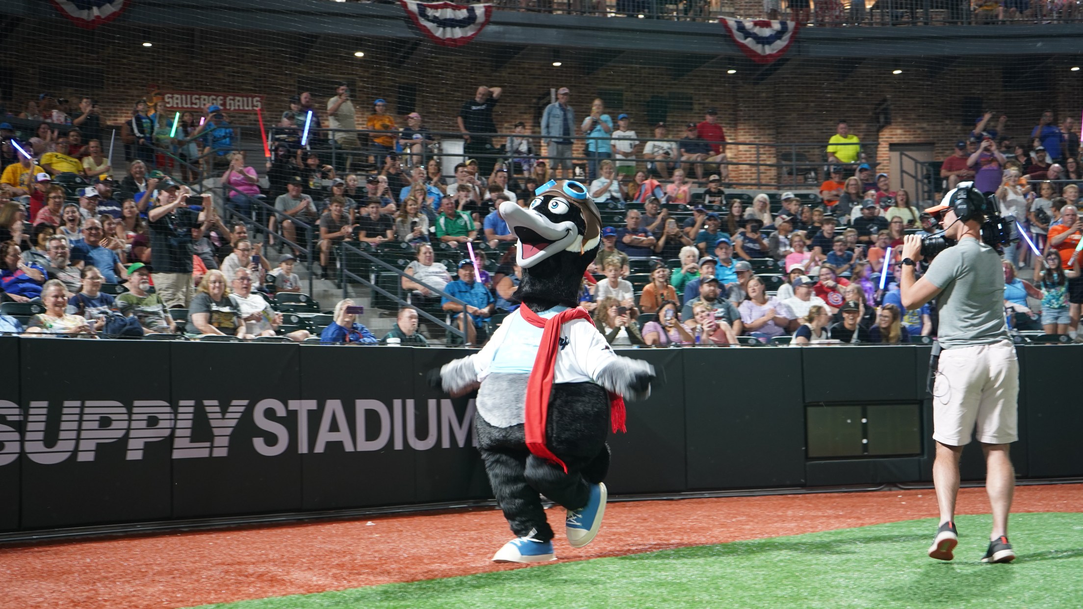 Poopsie was introduced to an excited crowd following Friday night’s game against South Bend at ABC Supply Stadium after an elaborate video created by the Sky Carp production crew.