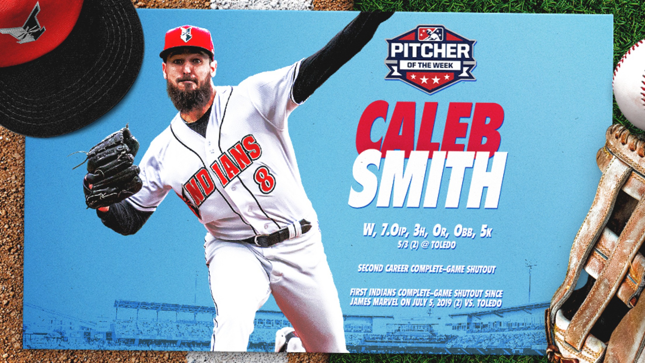 INDIANAPOLIS – Minor League Baseball and the Indianapolis Indians today announced that left-handed pitcher Caleb Smith has been named the International League Pitcher of the Week after tossing a 7.0-inning complete-game shutout in Game 2 of Wednesday’s doubleheader at Toledo.