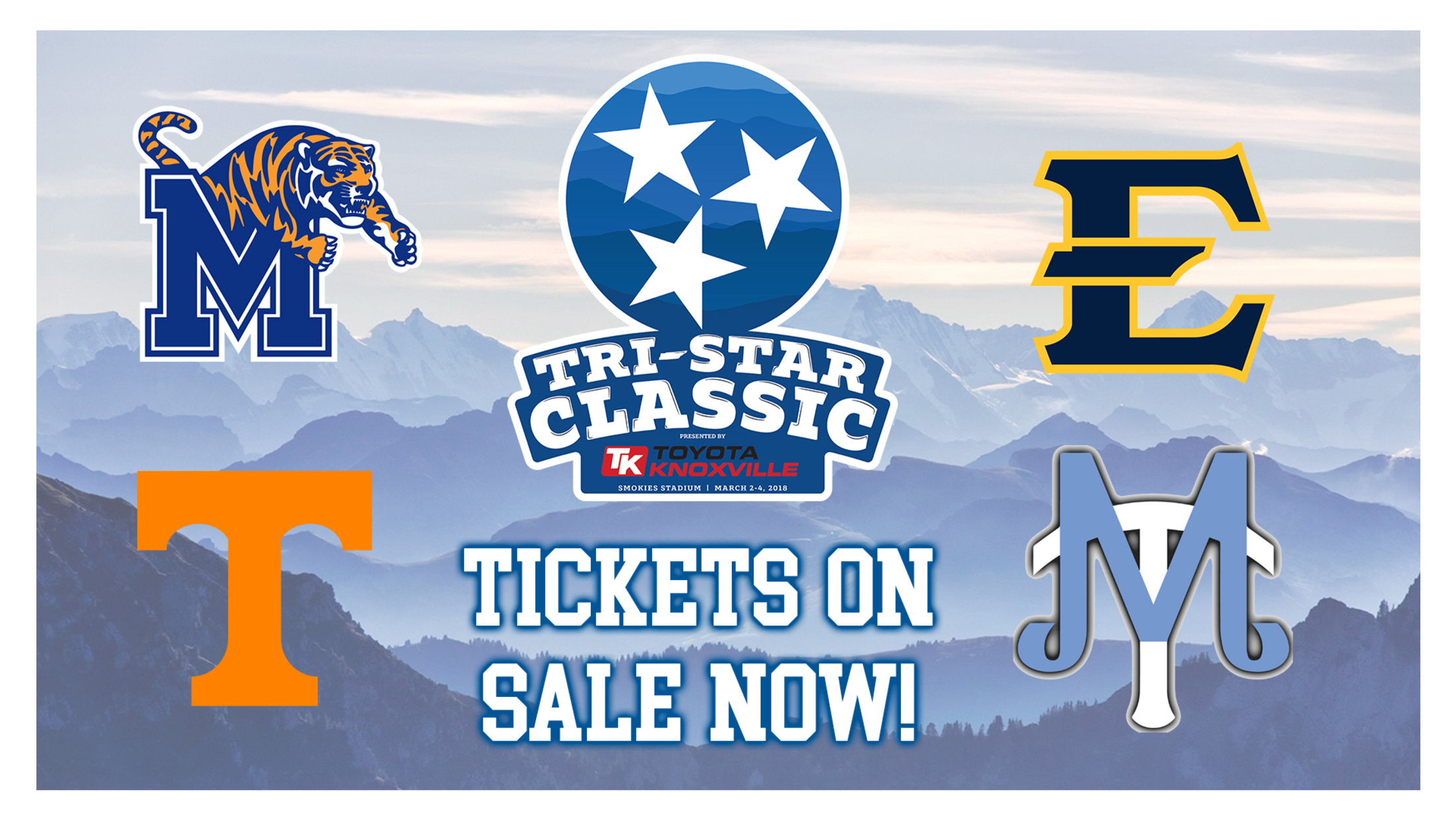 SEVIERVILLE - The Tennessee Smokies have announced that tickets for the Tri-Star Classic Presented by Toyota Knoxville are officially on sale to the public. The Tennessee Smokies will host the Tri-Star Classic March 2-4, 2018 at Smokies Stadium. This event will feature the University of Tennessee, East Tennessee State University, Middle