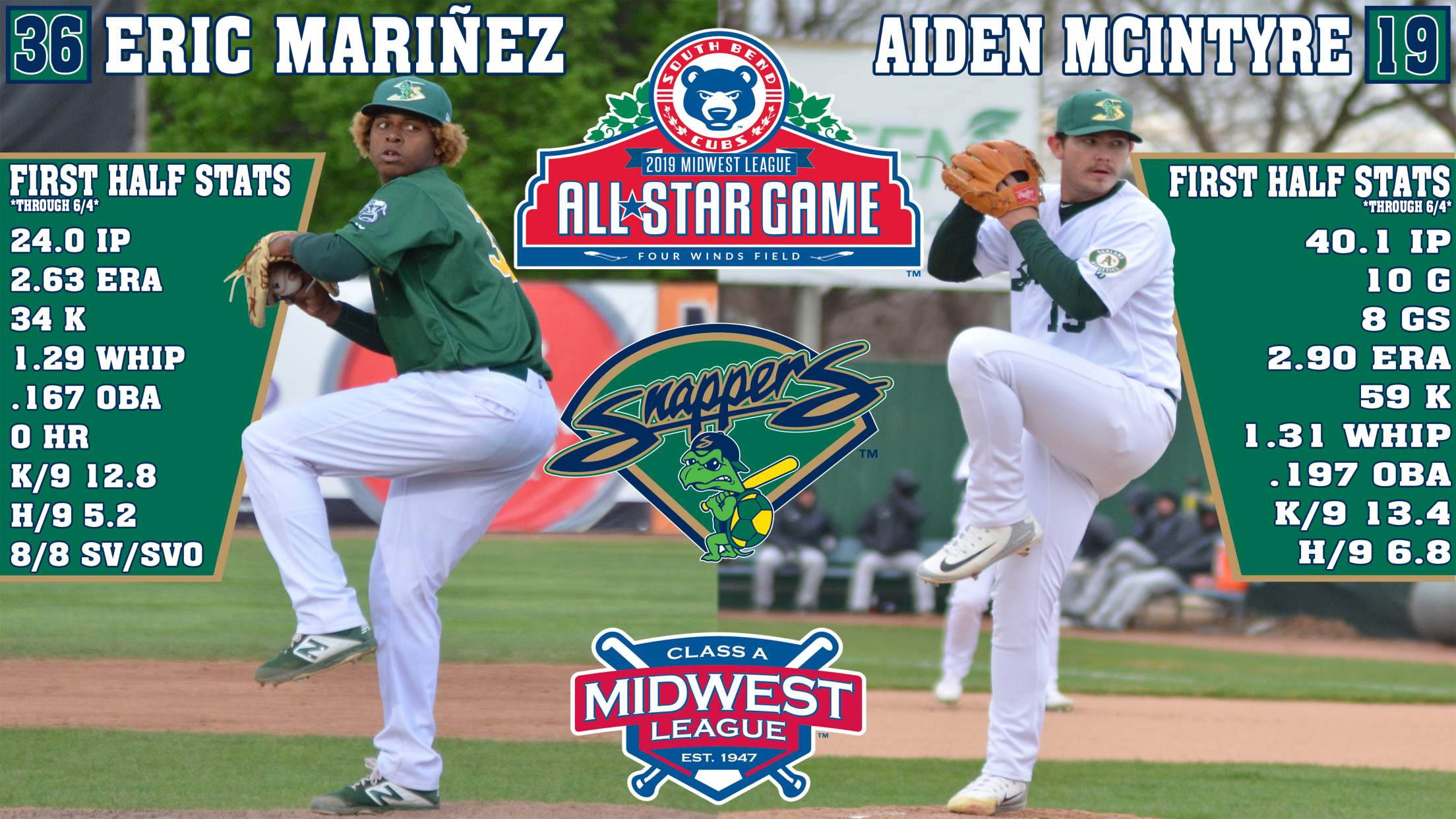 The Midwest League announced the rosters for the 2019 All-Star Game this morning, and two Snappers hurlers were among those selected. Closer Eric Mariñez and starting pitcher Aiden McIntyre will represent Beloit as part of the Midwest League Western Division's pitching staff on June 18 in South Bend.