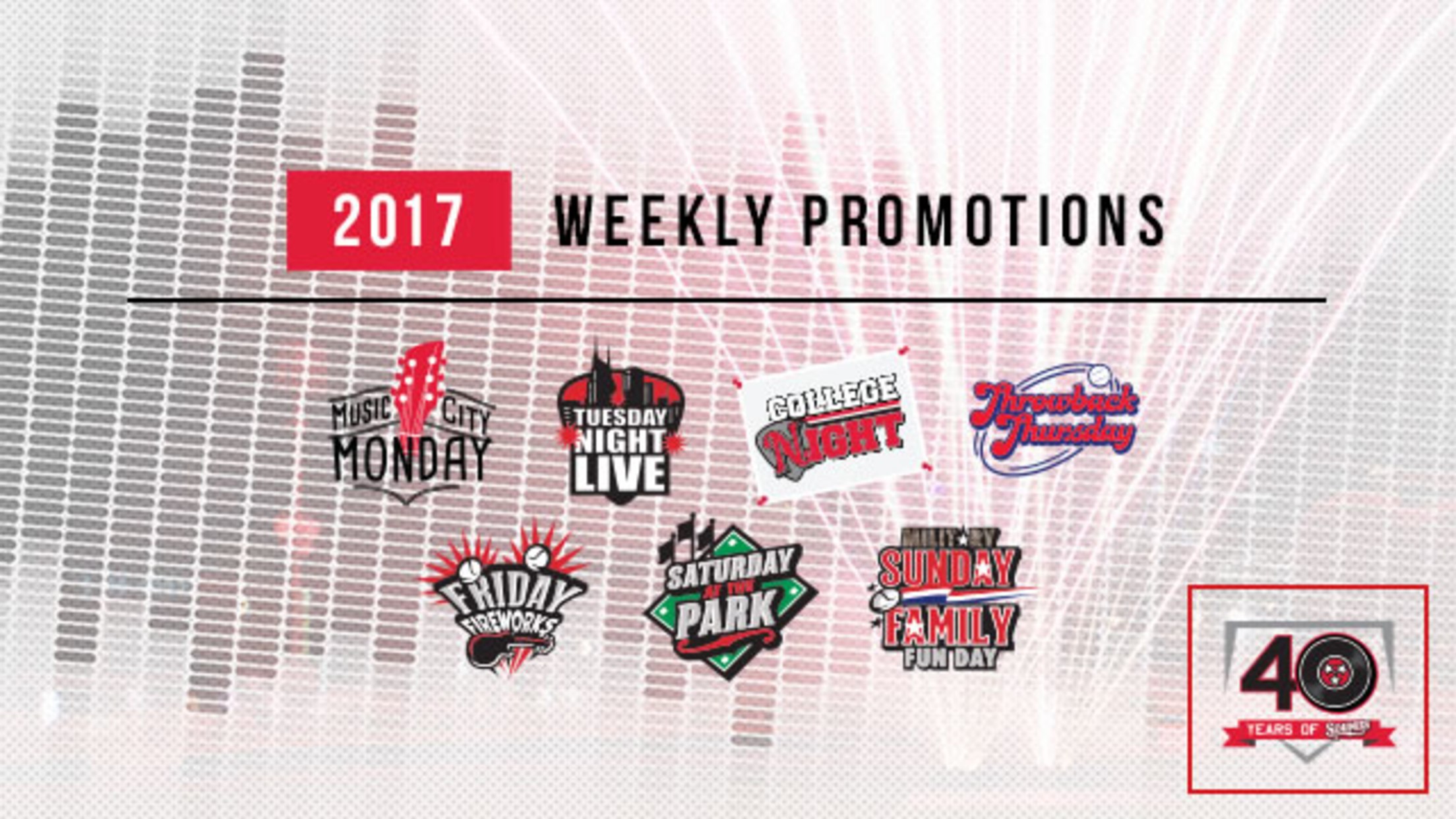 Sounds Announce Weekly Promotions Friday Fireworks, Family Sundays and Music City Mondays Highlight Weekly Promos February 7, 2017 Facebook Share X Share Email Copy Link [Empty Body] [Empty Body] Read More: Nashville Sounds