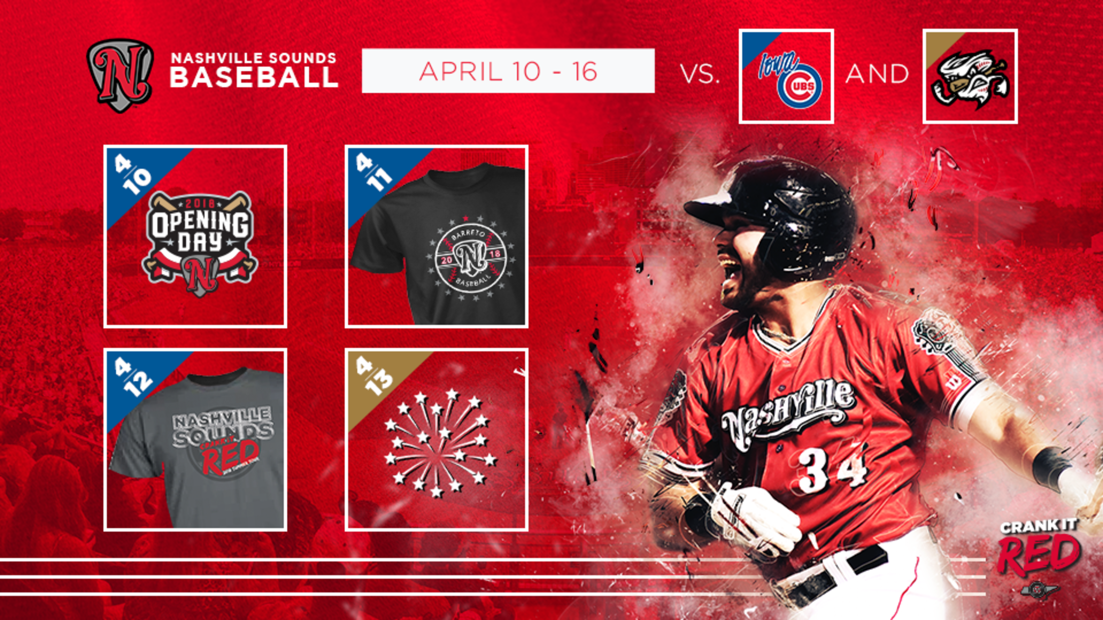 The Nashville Sounds Baseball Club returns to First Tennessee Park for Opening Day and the first homestand of the 2018 season on Tuesday, April 10.The fourth season at First Tennessee Park begins with the Sounds welcoming the Triple-A affiliate of the Chicago Cubs, the Iowa Cubs, for a three-game series