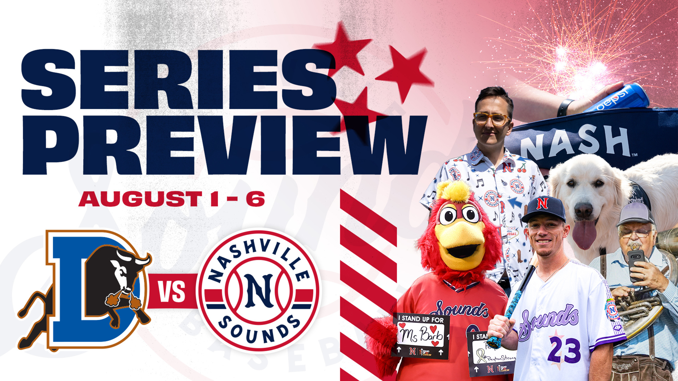 - Throwback Thursday presented by Budweiser – The Sounds will wear throwback uniforms to commemorate the team’s original uniform style from 1978. Fans can purchase Pepsi fountain soda and Budweiser products at a discounted rate.