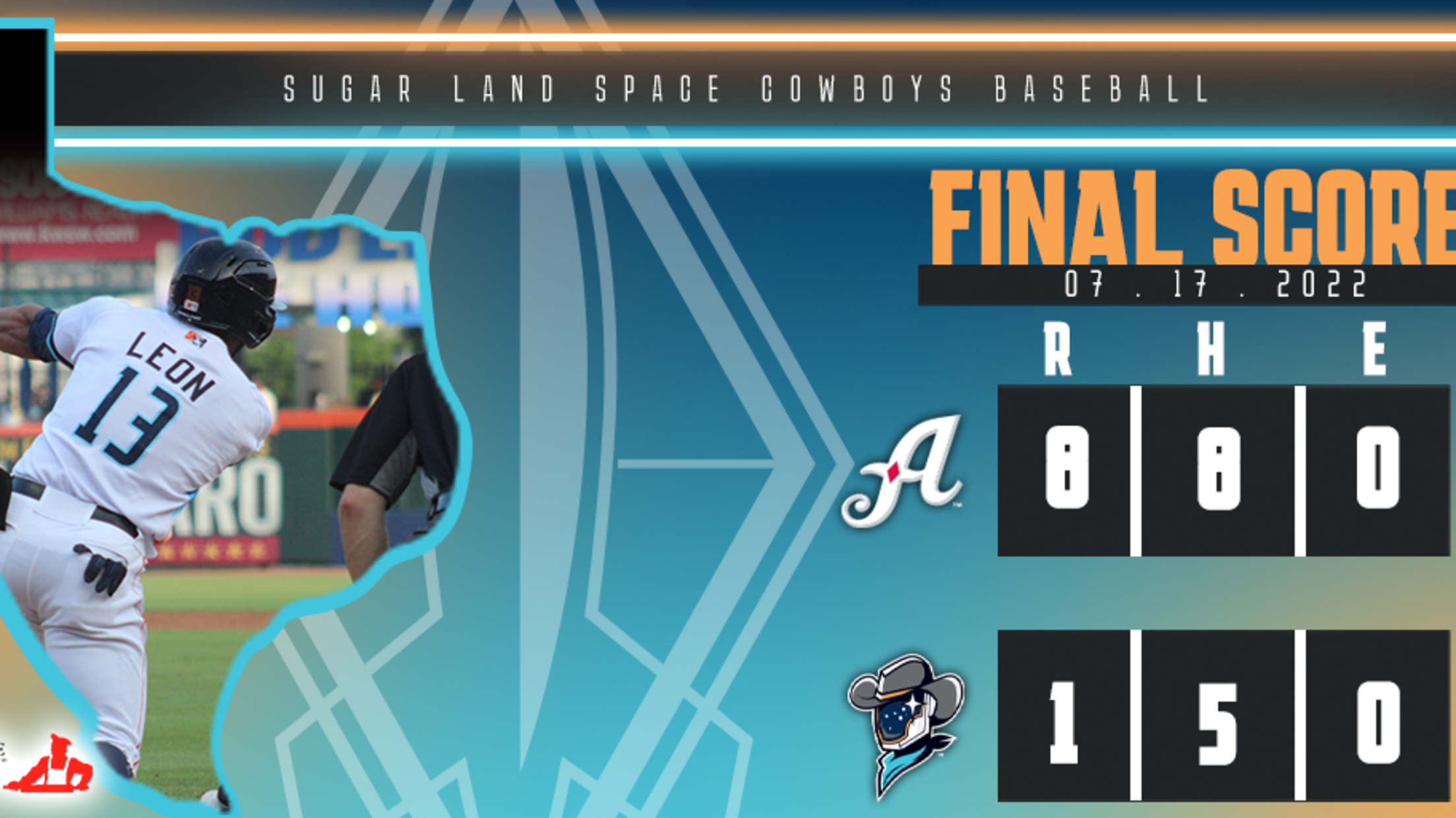 (SUGAR LAND, Texas) – The Sugar Land Space Cowboys closed out a 12-game homestand Sunday night with an 8-1 loss to the Reno Aces. The Space Cowboys will join the rest of Minor League Baseball with a four-game break, returning to action at 7:05 p.m. on Friday to begin a