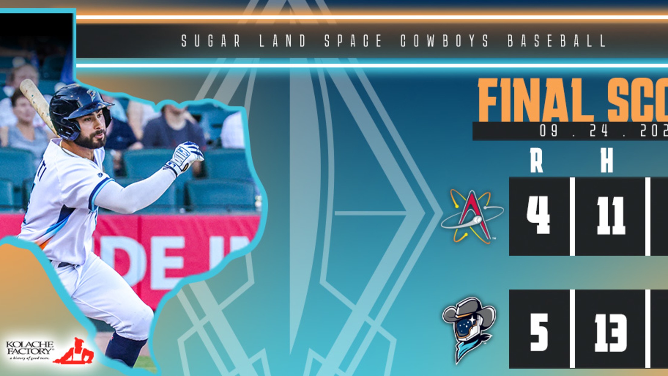 (SUGAR LAND, Texas) – The Sugar Land Space Cowboys notched a series victory in their final home series of the season with a 5-4 win over the Albuquerque Isotopes on Saturday night at Constellation Field. The Space Cowboys scored three runs in the second to help lead them to their