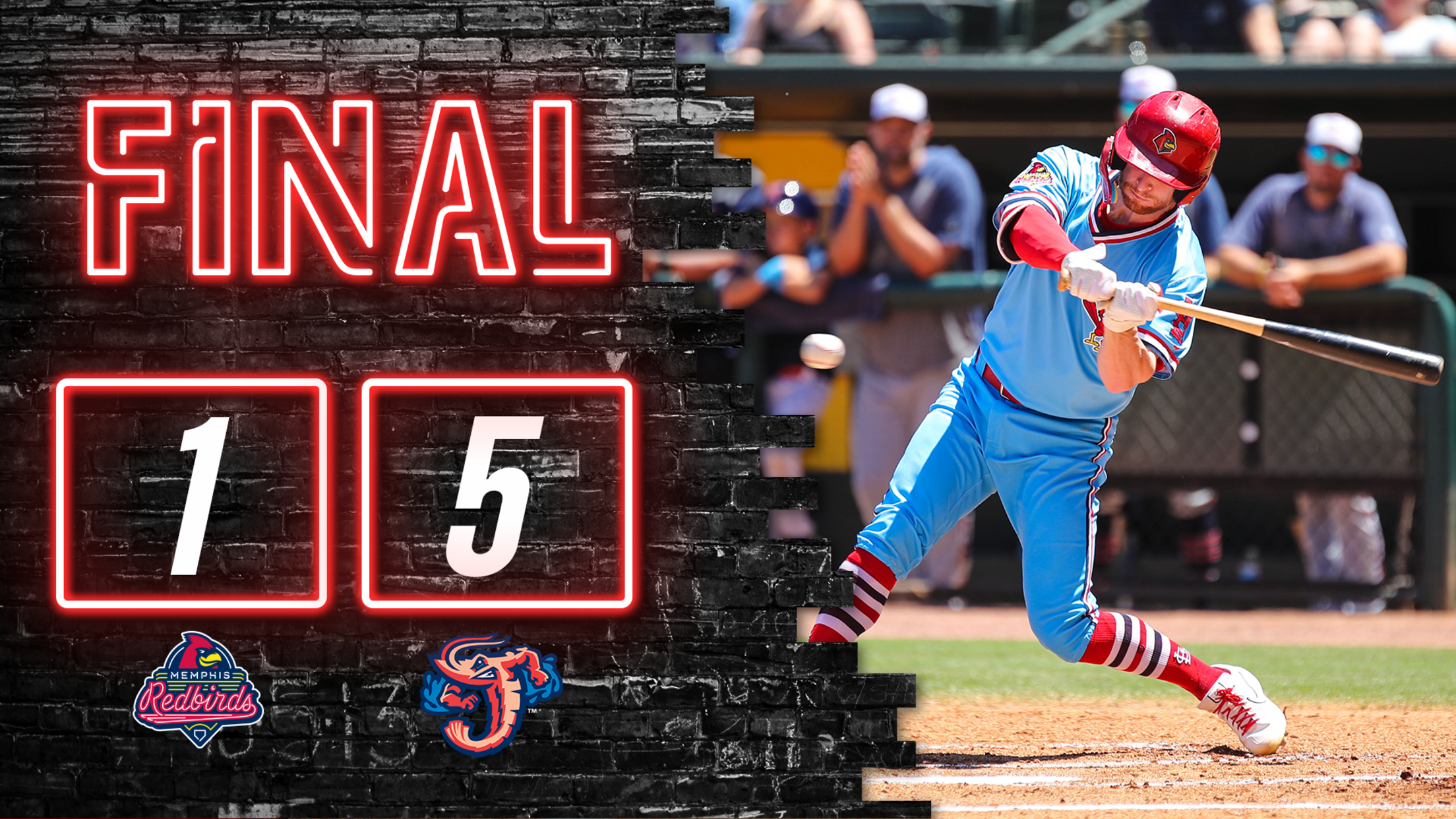MEMPHIS, TN – The Memphis Redbirds dropped game three of a six-game series with the Jacksonville Jumbo Shrimp at AutoZone Park on Thursday night by a final score of 5-1.