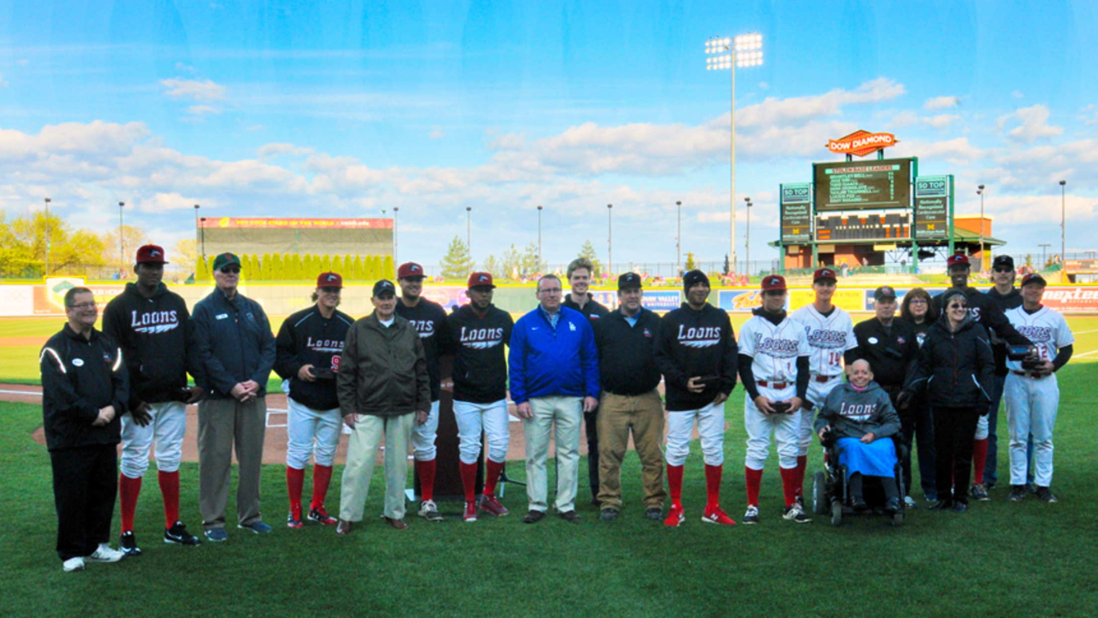 MIDLAND, Mich. - It was a celebratory atmosphere around a blustery Dow Diamond as the Great Lakes Loons celebrated their first Midwest League Championship in franchise history on Saturday night. After the 2016 championship flag and plaque were unveiled and the returning players were honored before the game, the Loons