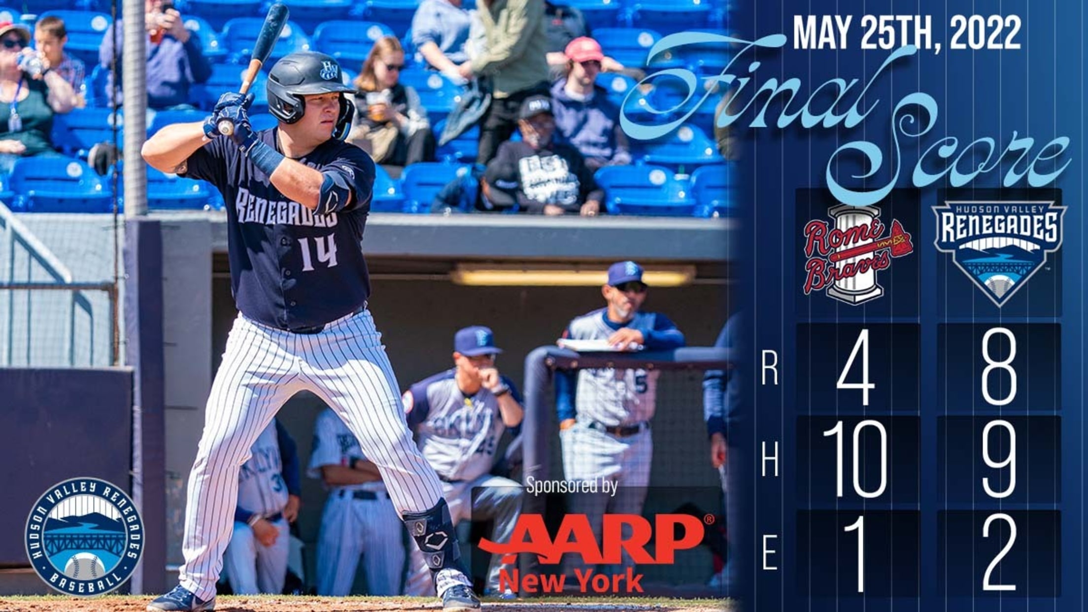 WAPPINGERS FALLS, NY (May 25, 2022) — The Hudson Valley Renegades stole seven bases en route to an 8-4 win over the Rome Braves on Wednesday afternoon at Dutchess Stadium.