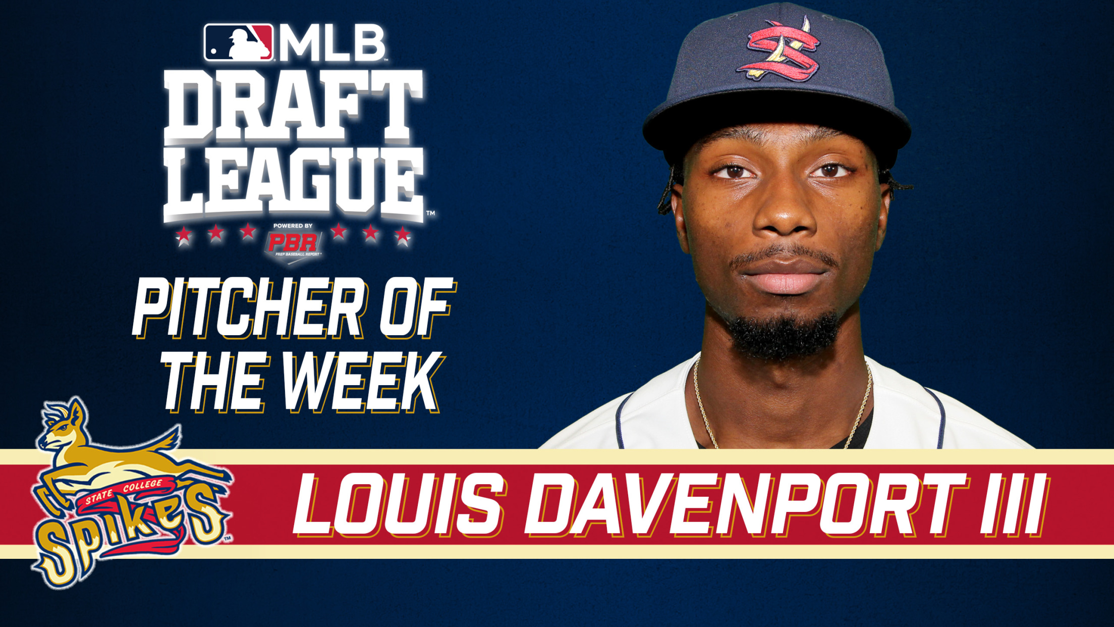 The Major League Baseball Draft League announced on Tuesday that State College Spikes right-hander Louis Davenport III was named the MLB Draft League Pitcher of the Week for the week of August 15-21.
