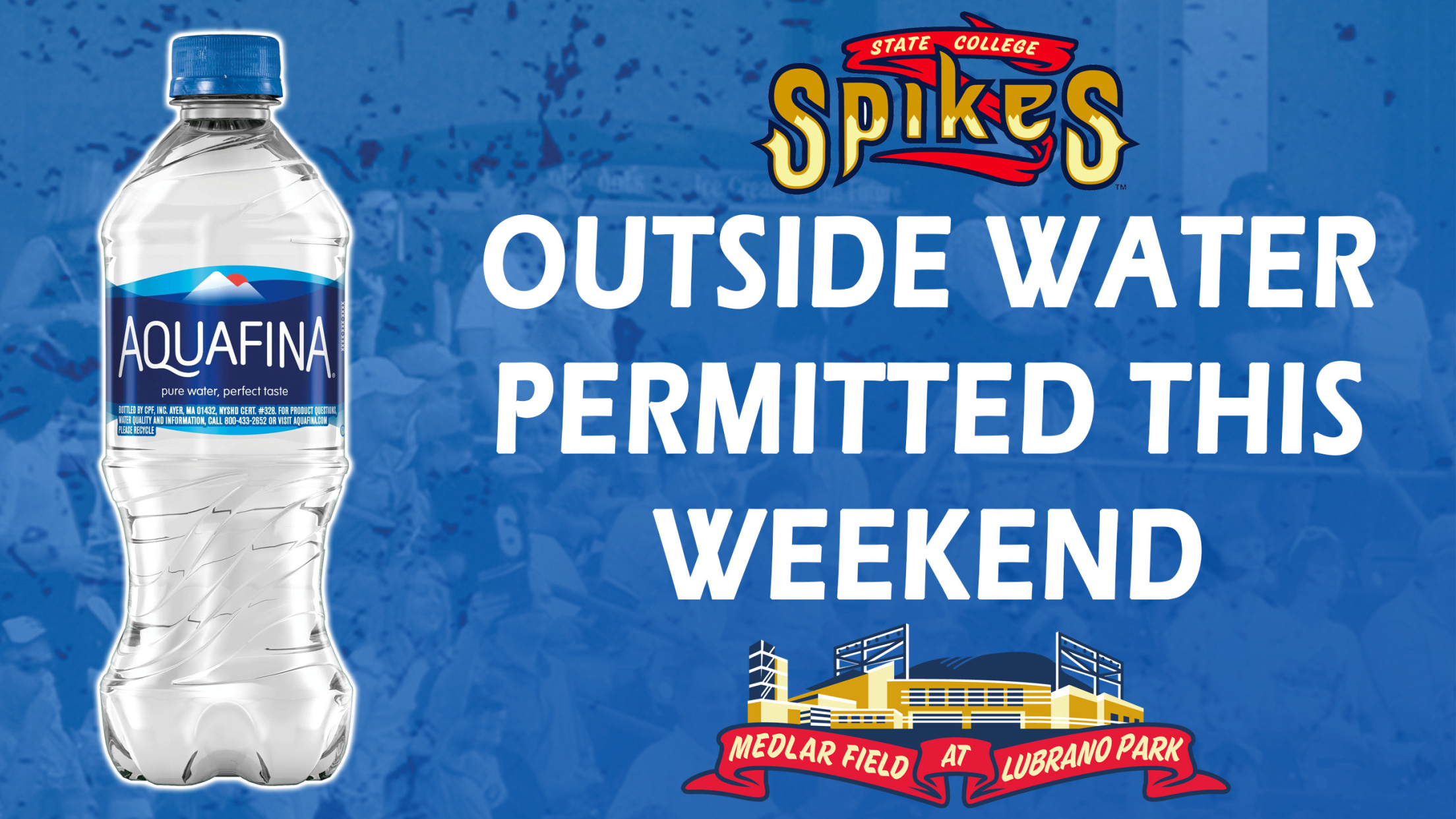 With high temperatures forecasted for Central PA this weekend, the State College Spikes will allow fans to bring in outside water in order to stay hydrated during Saturday and Sunday's games at Medlar Field at Lubrano Park.Fans will be allowed to bring their water supply through the main ballpark gates