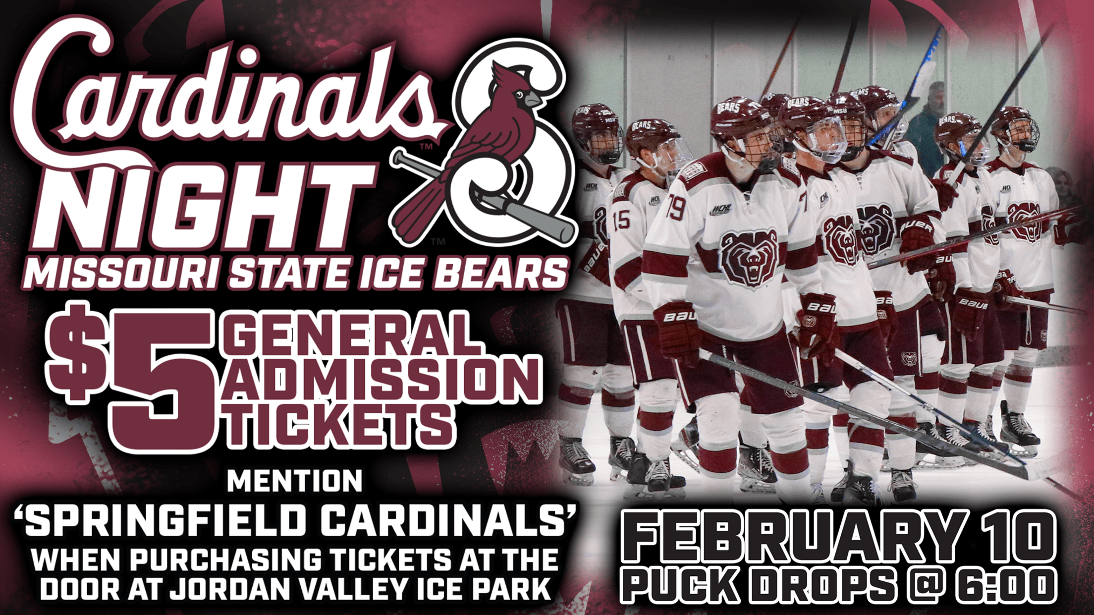 Mention "Springfield Cardinals Discount" at the Ice Park Ticket Office for $5 GA Tickets!