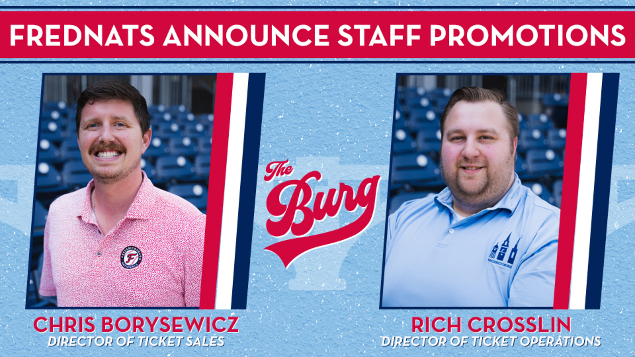 Fredericksburg, VA - The Fredericksburg Nationals, a proud affiliate of the Washington Nationals, are thrilled to announce the promotions of Chris Borysewicz to the position of Director of Ticket Sales and Rich Crosslin to the position of Director of Ticket Operations. These appointments come as part of the organization's ongoing