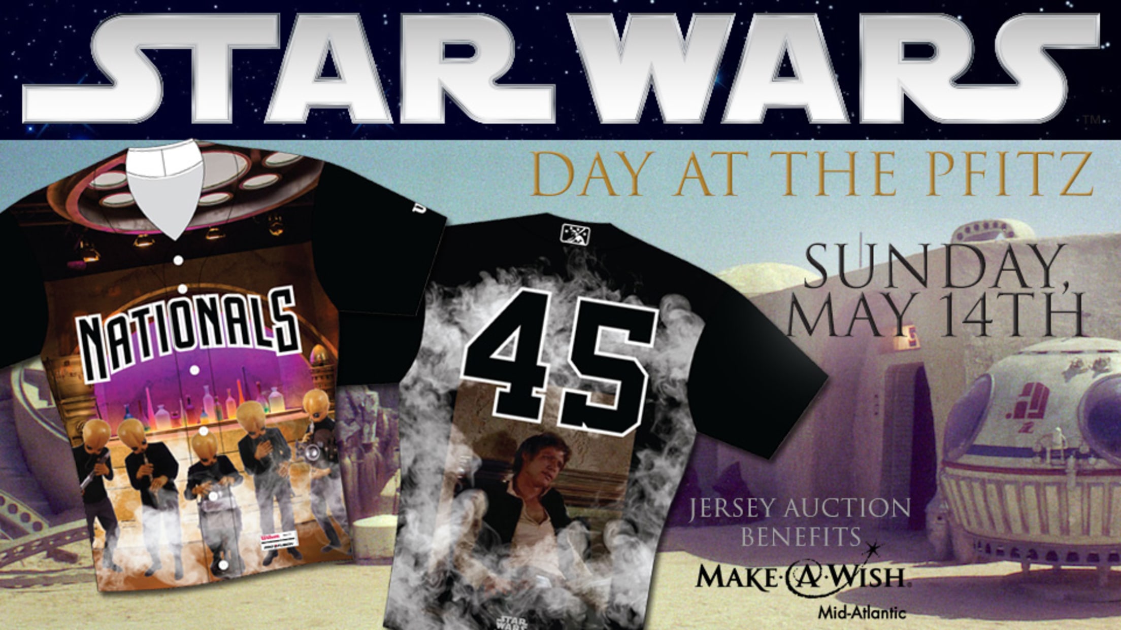 This annual Star Wars game used, autographed jersey auction will run during the game with proceeds to benefit Make-A-Wish® Mid-Atlantic. Fans will bid on these unique Star Wars-inspired collectable jerseys worn by P-Nats players and coaches during the game which will then be autographed after the game by the player or coach who wore the jersey. Fans who win the exclusive Star Wars jerseys will have the opportunity to come onto the field post-game and take a photo with the player or coach while holding the signed, limited edition Star Wars gamer jersey.