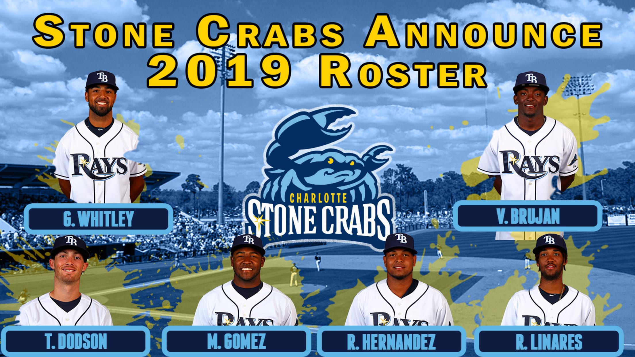 PORT CHARLOTTE, Fla. (April 2, 2019) - The Charlotte Stone Crabs, in conjunction with the Tampa Bay Rays, have announced the 2019 Stone Crabs Opening Night roster.