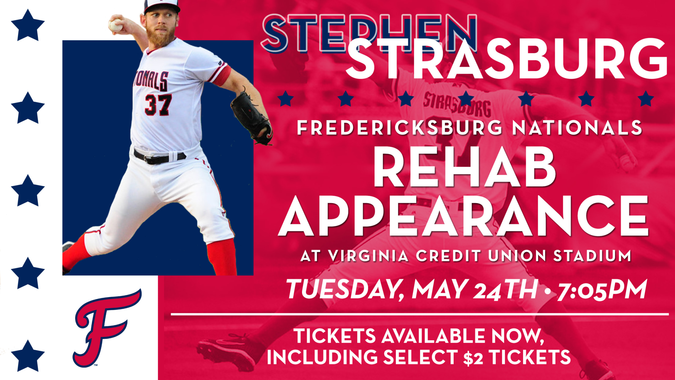 FREDERICKSBURG, VA - In conjunction with the Washington Nationals, the Fredericksburg Nationals announce that three-time MLB All-Star and 2019 World Series MVP starting pitcher Stephen Strasburg will start Tuesday's Fredericksburg Nationals game against the Salem Red Sox at Virginia Credit Union Stadium as part of a minor league rehab assignment.