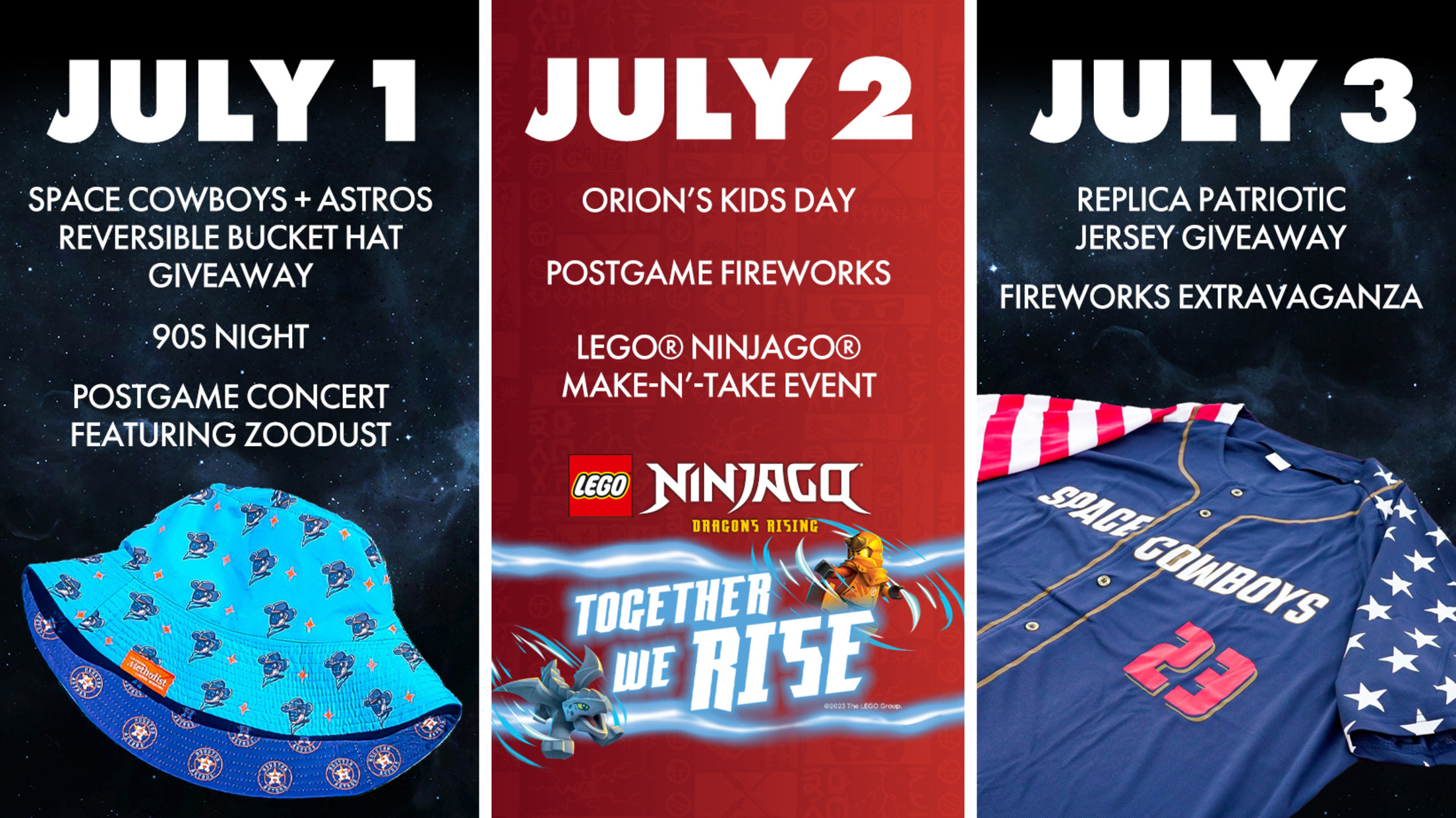 July kicks off at Constellation Field with 90’s Night! The first 2,000 fans will receive a Space Cowboys and Houston Astros Reversible Bucket Hat presented by Houston Methodist as they enter the gates, which open at 5:30 pm.