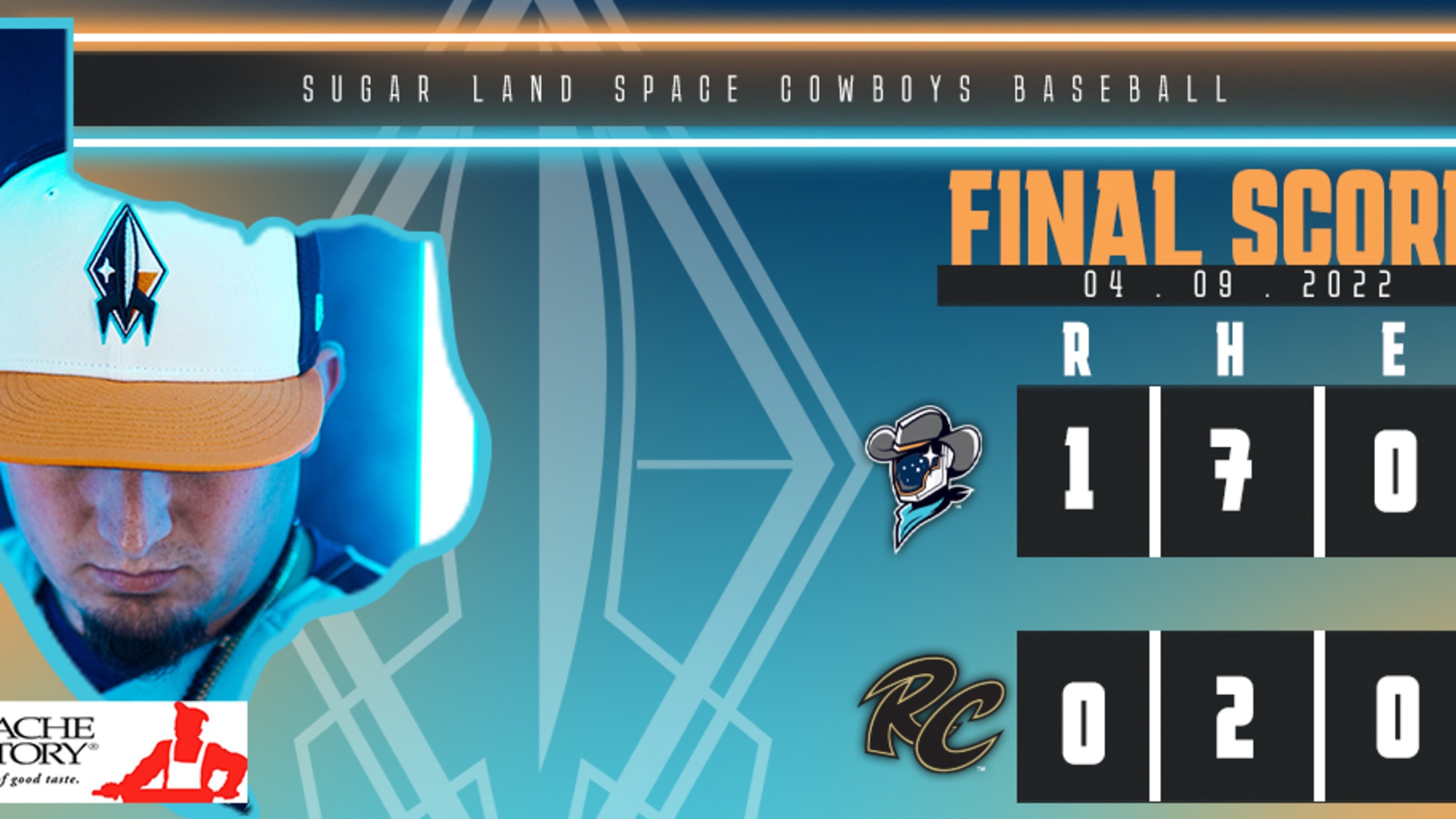 (WEST SACRAMENTO, Calif.) – Behind a phenomenal effort from their pitching staff, the Sugar Land Space Cowboys won their first game under their new brand as the Houston Astros Triple A affiliate. The Space Cowboys allowed just two hits in a 1-0 victory over the Sacramento River Cats on Saturday