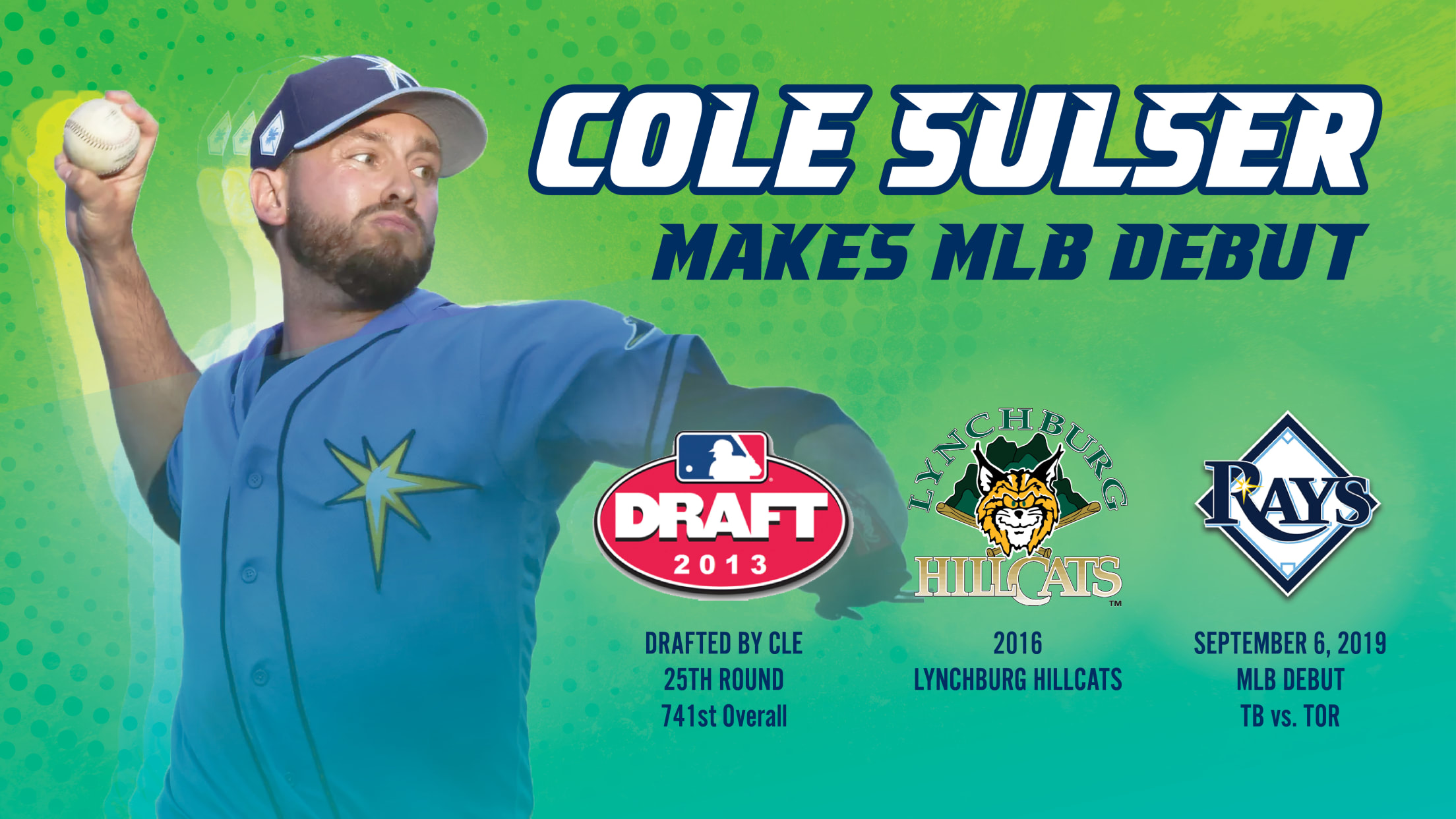 Lynchburg, Va. - Former Lynchburg Hillcats right-hander Cole Sulser made his Major League debut for the Tampa Bay Rays on Friday, September 6, against the Toronto Blue Jays. He entered the game in the eighth inning and pitched a scoreless frame, including a strike out of the first hitter he faced
