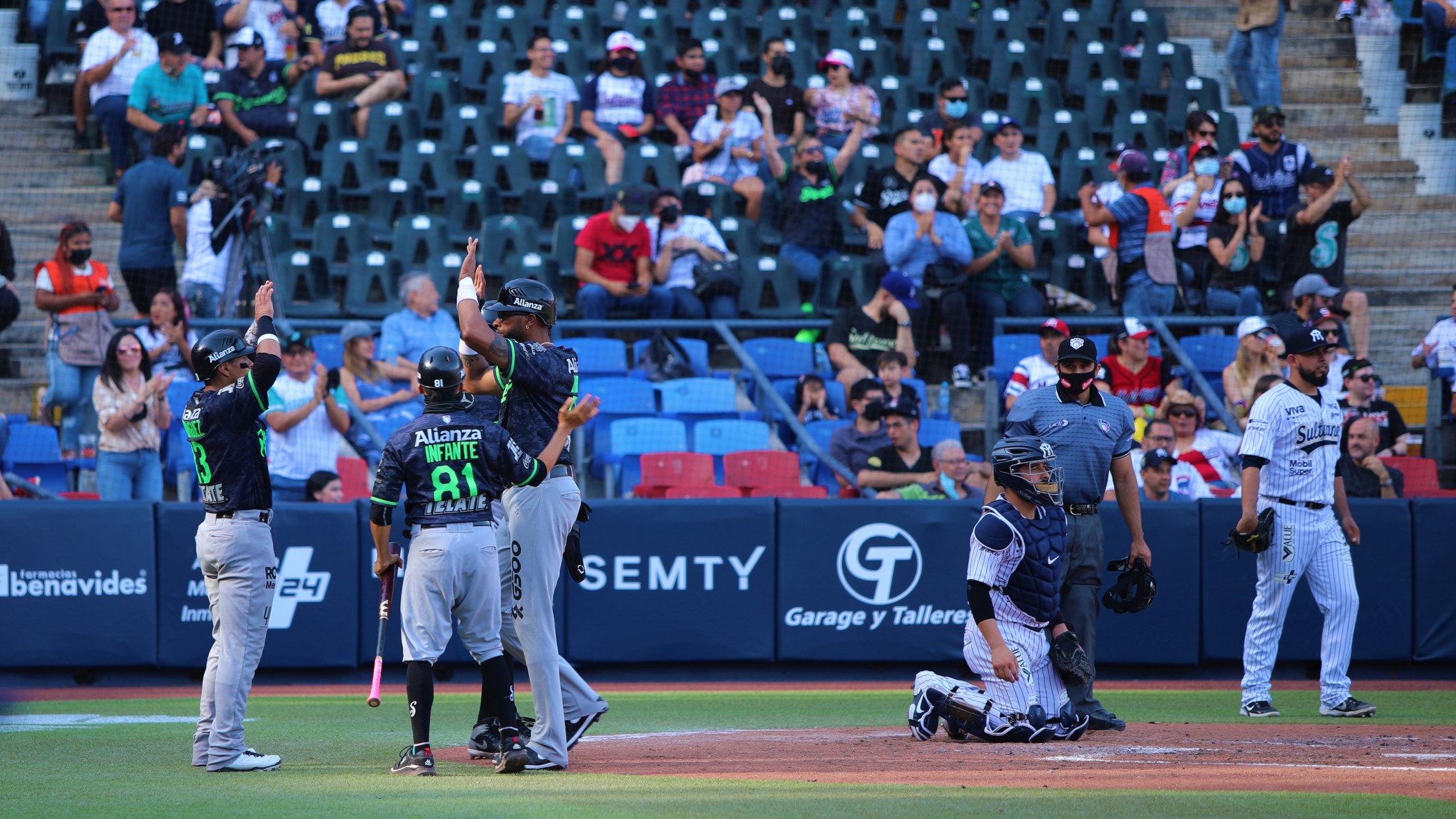 Sultanes tomó ventaja mínima en la séptima entrada gracias a par de imparables productores cortesía de Anthony Giansanti y Sebastián Elizalde, sin embargo, de inmediato, en la octava entrada, Andrés Ayón igualó el juego con una rola que impulsó desde tercera base al plato a Javier Mireles.