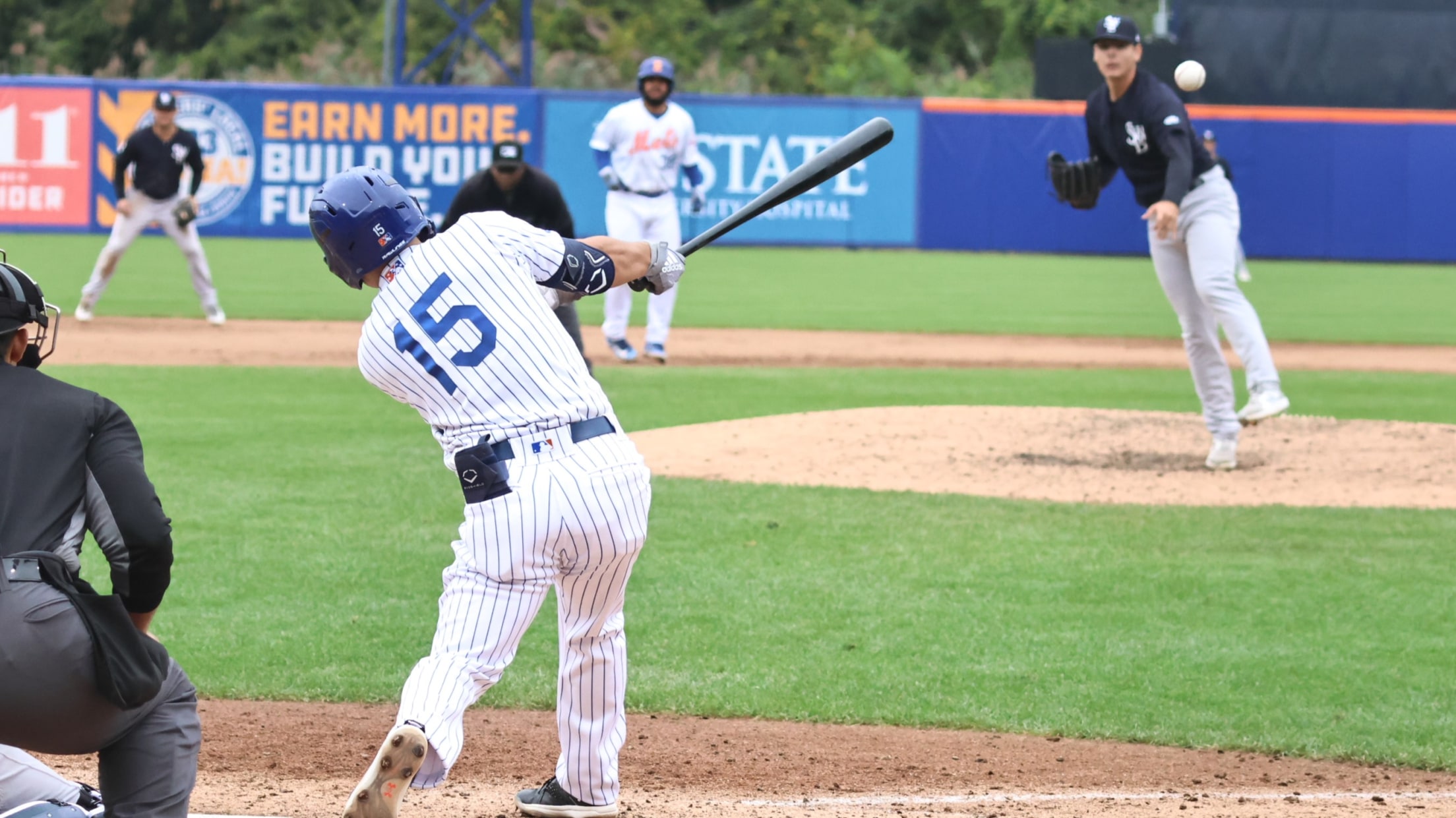 In the bottom of the seventh, the Mets crawled back in the game with three runs scored slightly unconventionally. The first run came home without Syracuse recording a hit. Jaylen Palmer was hit by a pitch to start the inning, followed by a Joe Suozzi walk, Jose Peroza being beaned by a pitch, and then Matt O’Neill drawing a bases-loaded walk to plate one run. That was followed by a Wyatt Young single and a Danny Mendick RBI groundout that made it a 7-3 game and added a little intrigue to the last couple innings of the season.