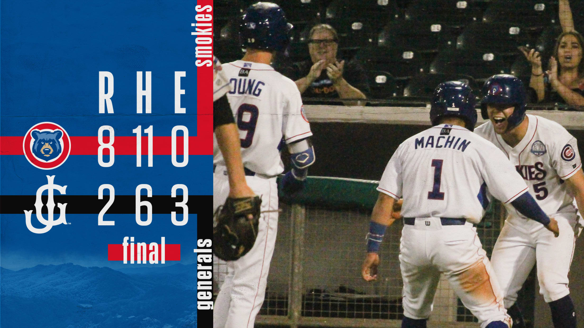 JACKSON, TN. - In Ben Zobrist's first rehab appearance with the Tennessee Smokies (52-77, 19-41), the offense ignited an 8-2 win over the Jackson Generals (73-54, 34-23) at the Ballpark at Jackson on Sunday night. Zobrist went 1-for-2 at the plate with three walks and two runs. Pitchers from both dugouts dealt three