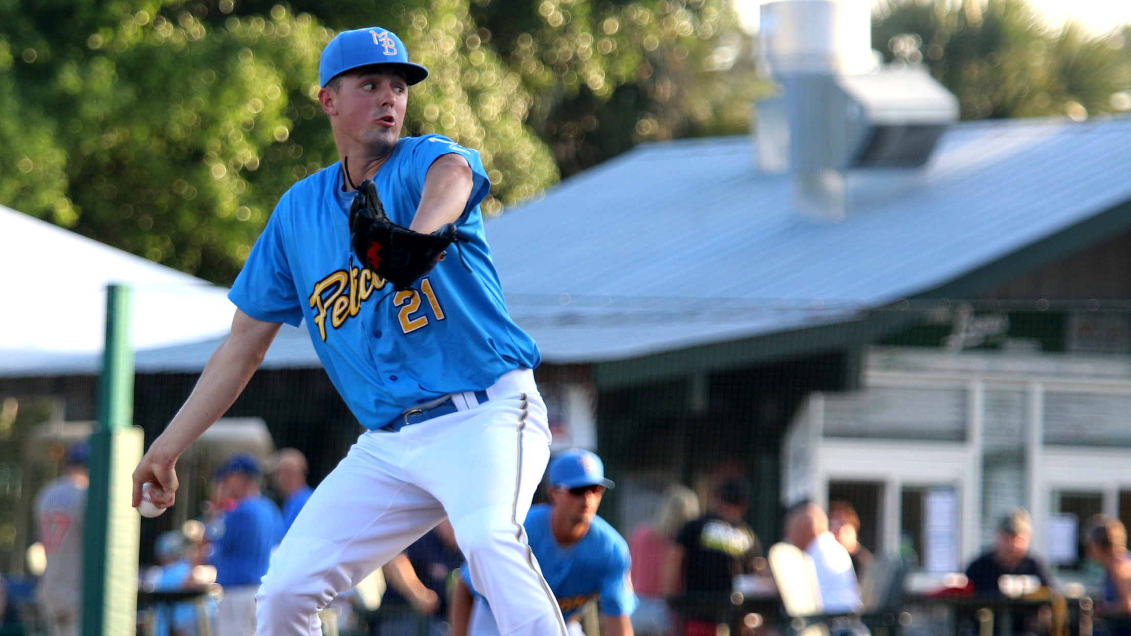 MYRTLE BEACH, S.C. (June 3, 2018) - Tyson Miller pitched six dominant innings Sunday for the Myrtle Beach Pelicans in their 3-0 win over the Down East Wood Ducks from TicketReturn.Com Field at Pelicans Ballpark, earning the Birds their first sweep of the season.Miller (5-4) earned the win with six shutout innings,