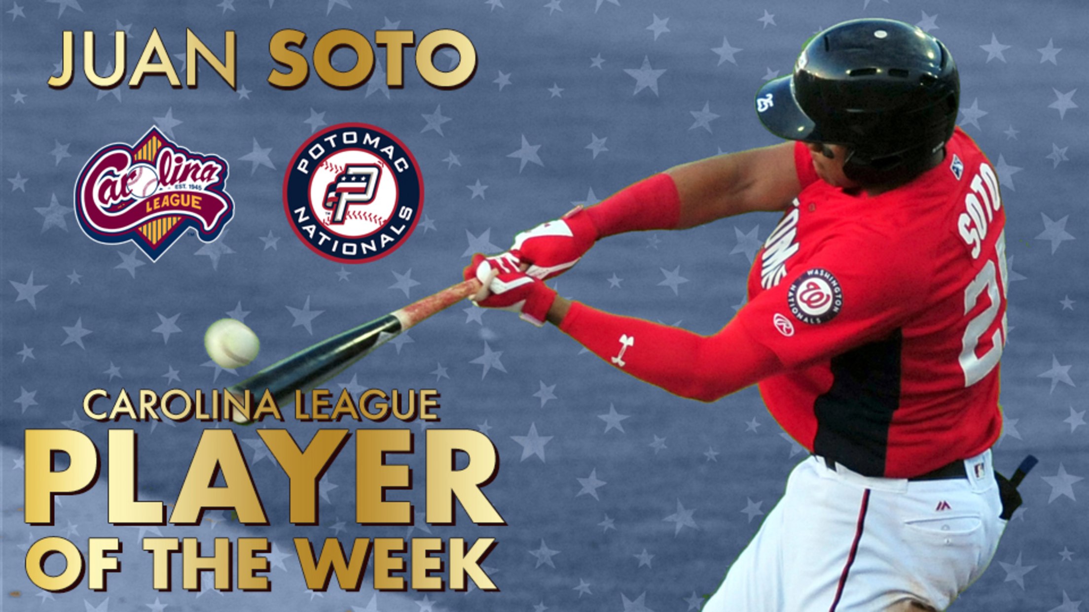 Woodbridge, VA---Earlier today, the Carolina League announced that Potomac Nationals RF Juan Soto has been named the Carolina League Player of the Week for the week of April 30th to May 6th. It is the first "Player of the Week" award for a Potomac player this season.Soto, called up to the