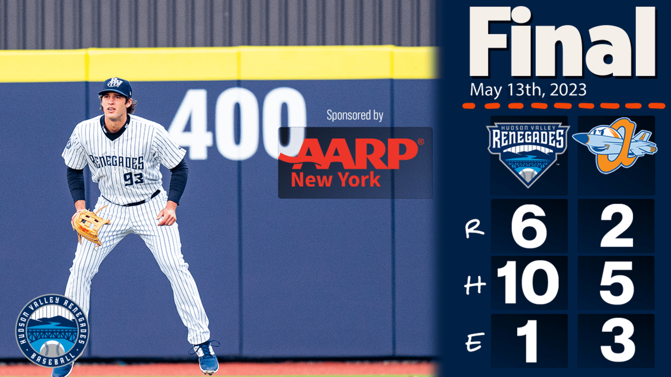 ABERDEEN, MD (May 13, 2023) — The Hudson Valley Renegades overpowered the Aberdeen IronBirds 6-2 on Saturday night at Leidos Field at Ripken Stadium. Hudson Valley jumped ahead early with a run in the first inning. After Spencer Jones led off the game with a double off Cooper Chandler (1-2),