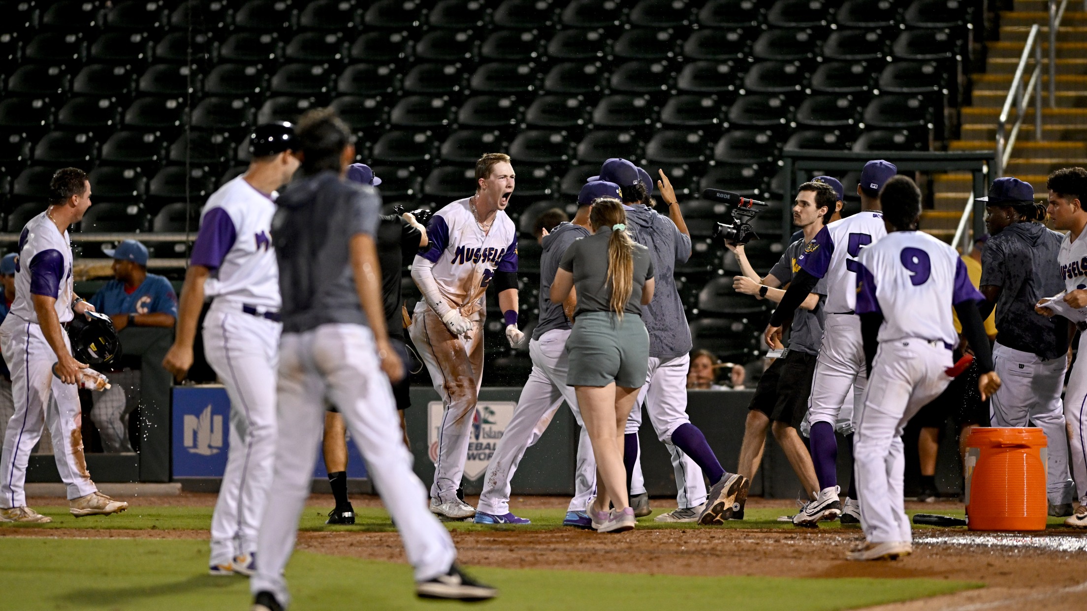 FORT MYERS, Fla. (August 27, 2024) – After a back and forth night of baseball to preview a possible playoff matchup, Brandon Winokur blasted the first pitch of the bottom of the 10th inning onto the left field berm to give the Mighty Mussels a thrilling 9-7 victory over the