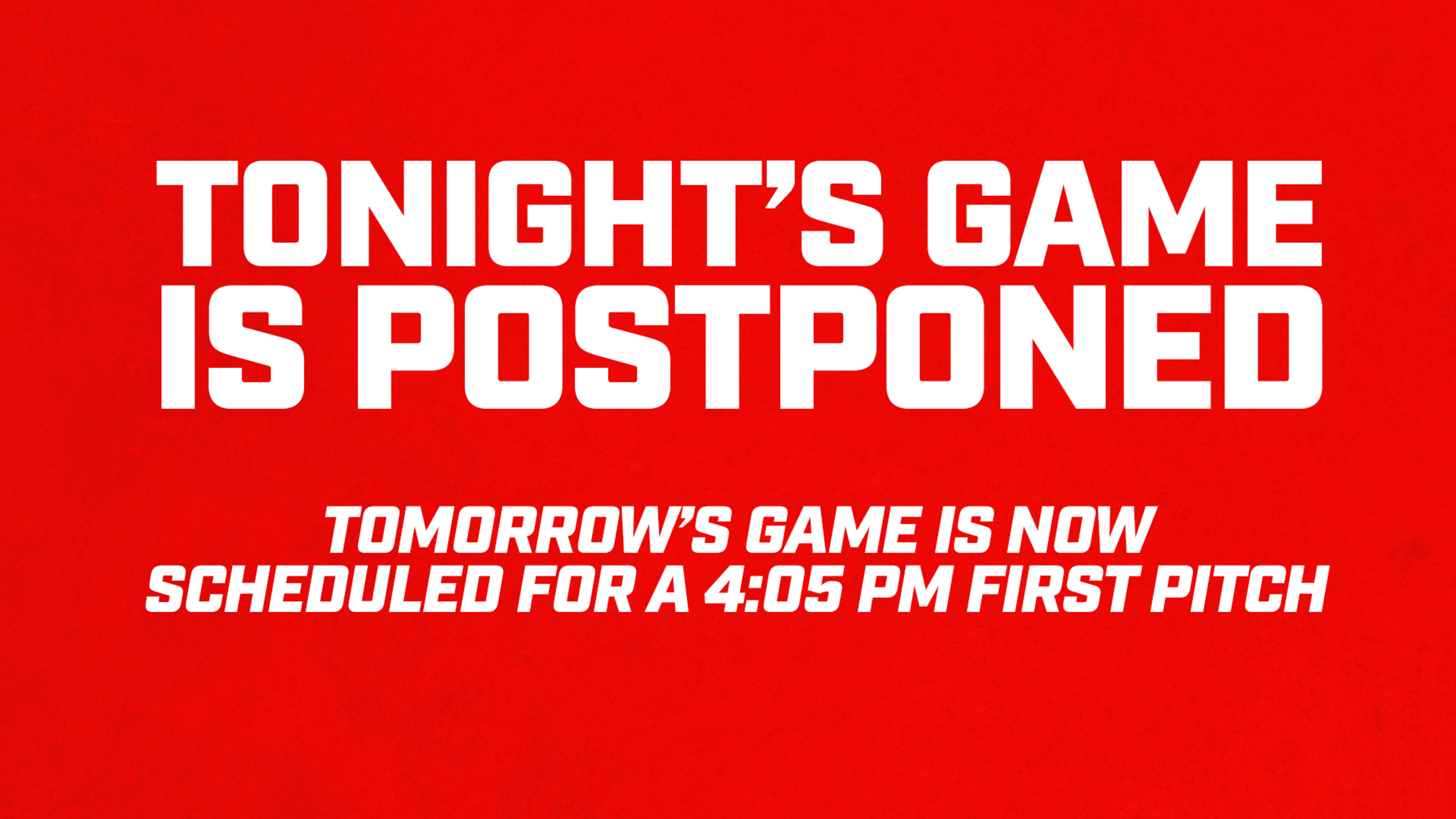 ROCHESTER, NY - Due to inclement weather, today’s game between the Rochester Red Wings and the Scranton/Wilkes-Barre RailRiders at ESL Ballpark has been postponed. The two teams will play the Red Wings' home opener tomorrow, Tuesday, April 1. First pitch is set for 4:05 p.m. and gates will open at