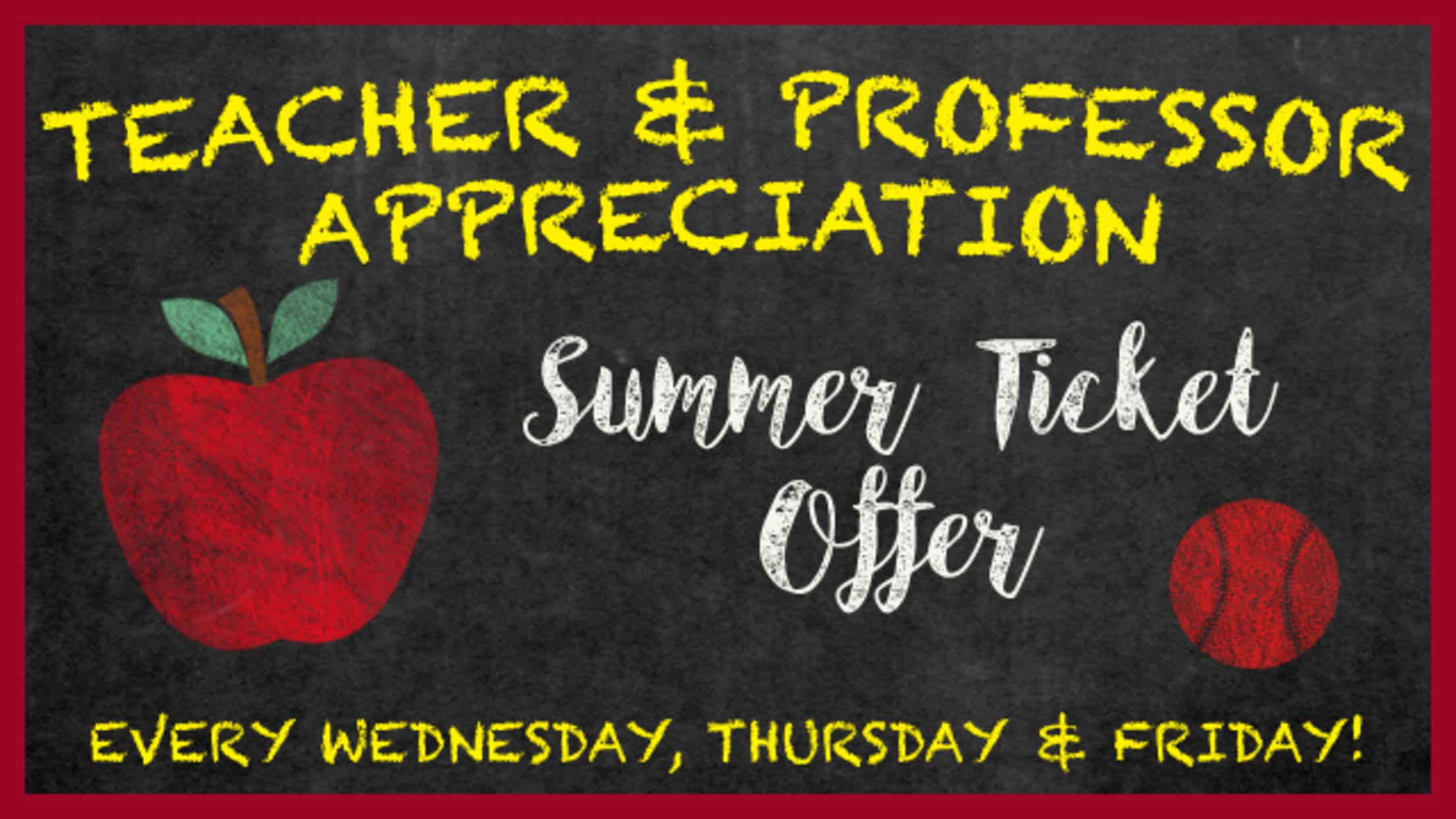 Teachers and professors may purchase up to four (4) tickets at the discounted price for any one game, Wednesday through Friday.