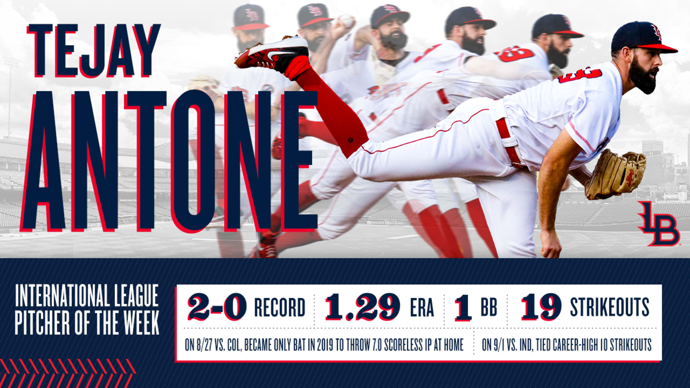 The 25-year-old is the third Bats pitcher, and second in the last 3 weeks, to win the IL Pitcher of the Week award this season. Antone joins fellow right-handers