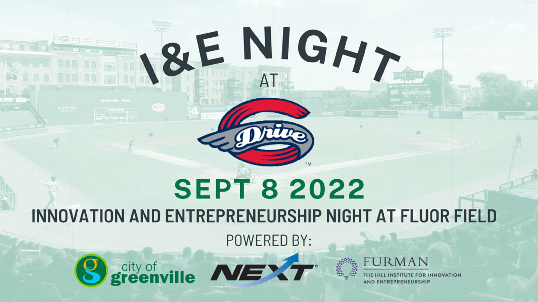The Greenville Drive are excited to host their second annual Innovation and Entrepreneurship Night at Fluor Field September 8th. Purchase your tickets here to be a part of this fun, signature event! Gates open at 6:00 PM while first pitch is 7:05 PM.