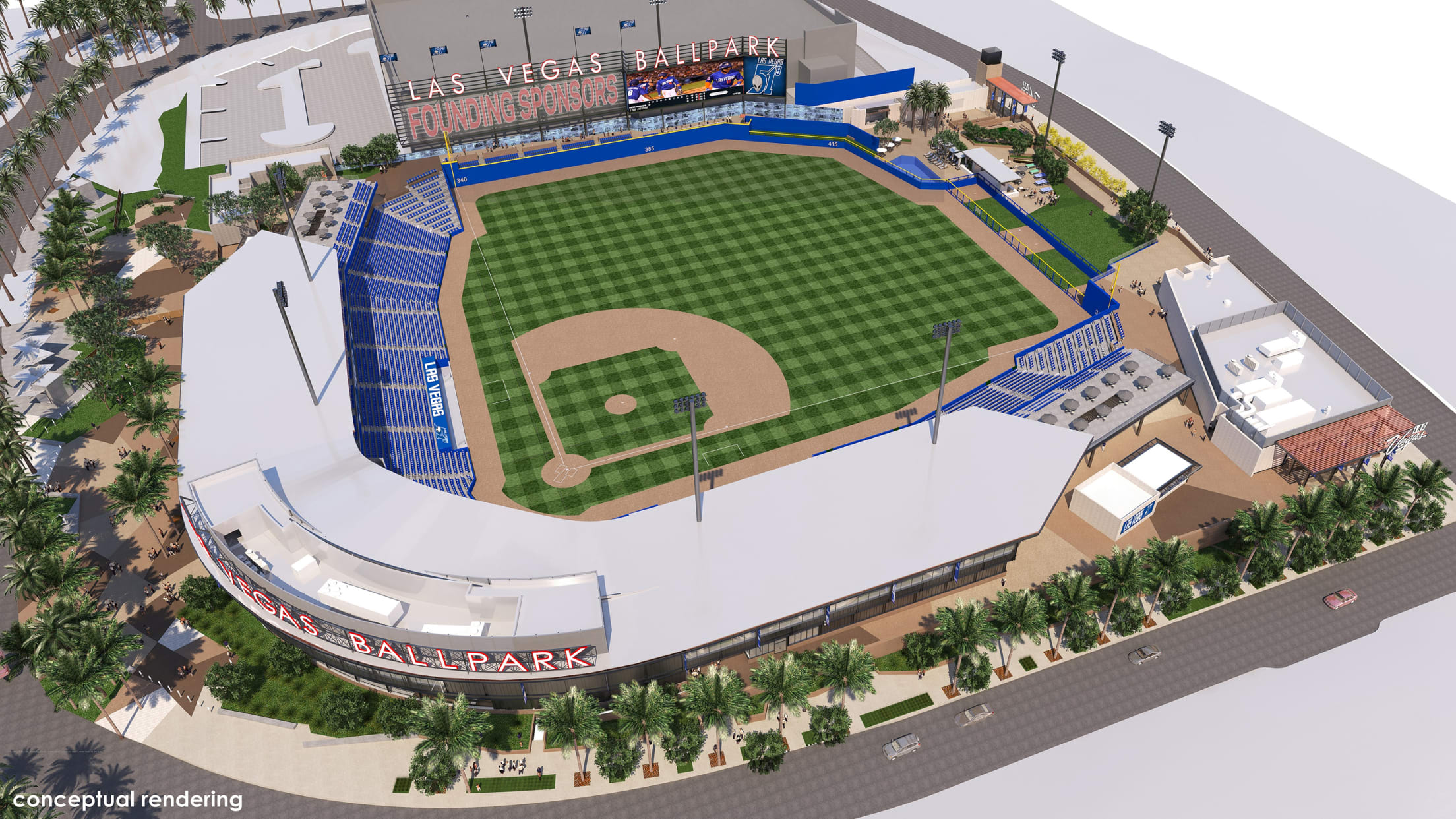 Las Vegas Ballpark, located on eight acres in Downtown Summerlin just south of City National Arena - practice facility for the Vegas Golden Knights, is the home of the Las Vegas Aviators, the city's professional Triple-A baseball team of the Pacific Coast League (PCL) and affiliate of the Oakland Athletics. Las Vegas Ballpark provides a wide range of seating options including 22 suites, club seats, berm seating, party zones and decks, picnic tables, kids' zone, bars and a pool beyond the outfield wall. Designed to create a festival-like atmosphere in Downtown Summerlin, the site is landscaped to complement the surrounding master planned community. The site is easily accessed from all regions of the valley via the 215 Beltway.