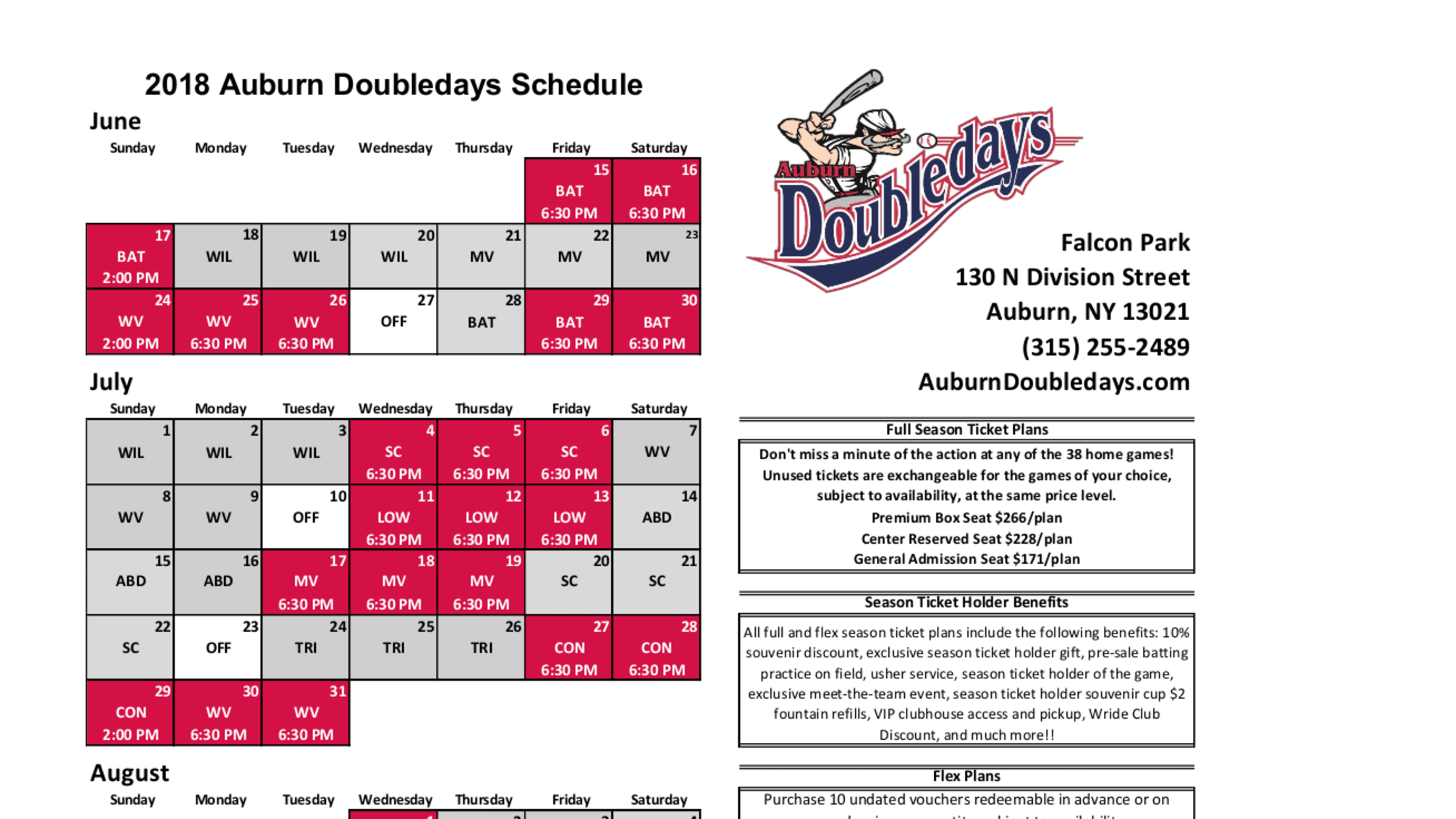 The Official Auburn Doubledays Schedule for 2018