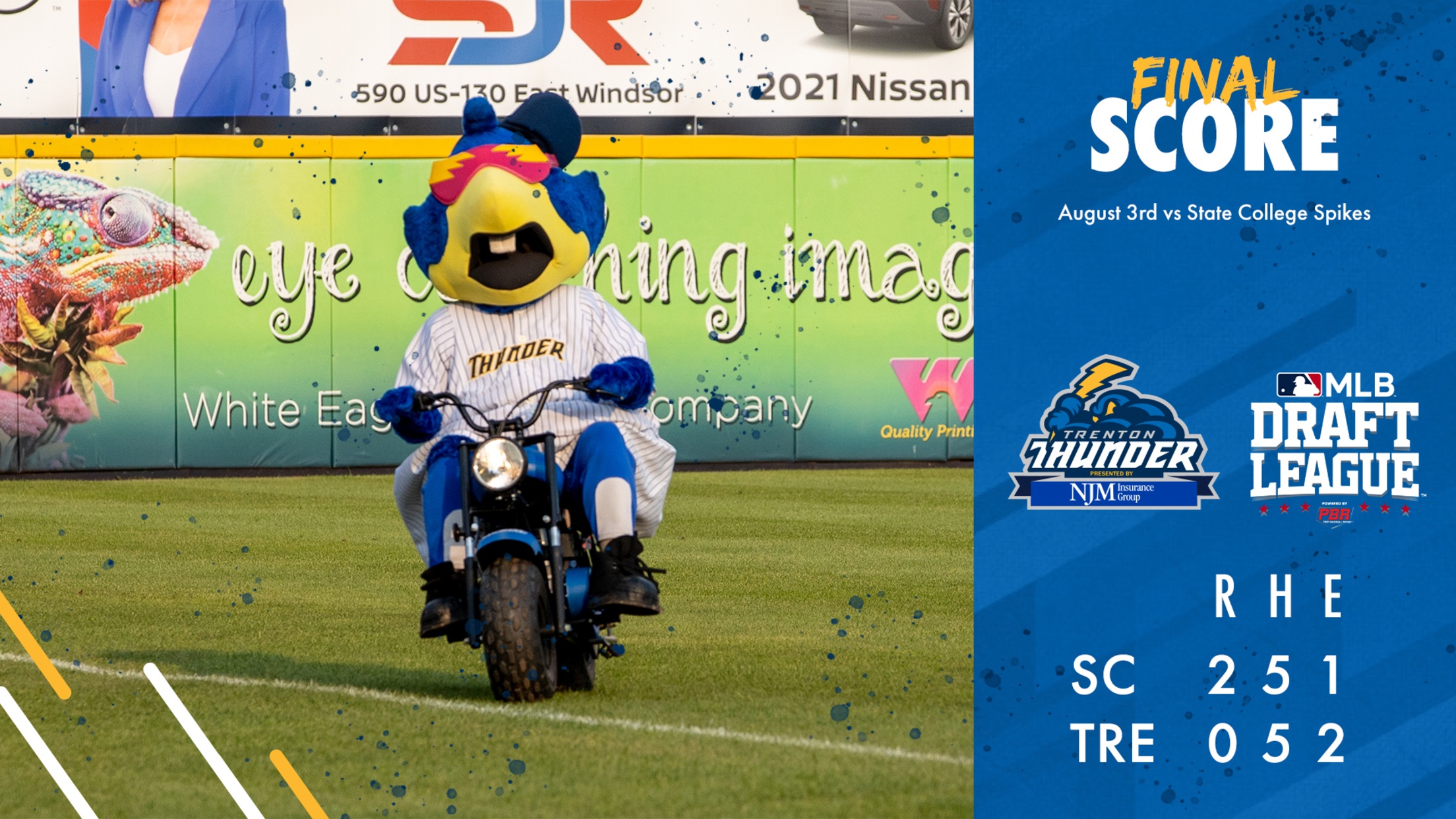 WP - Dalton Oates (3-0) LP - Jake Mulholland (0-1) SV - Blake Seigler (3) Time - 1:36 Att - 2,297 (Trenton, NJ) – In their first game in their rightful home, the Trenton Thunder were shut out by the State College Spikes 2-0 before a Tuesday night crowd of