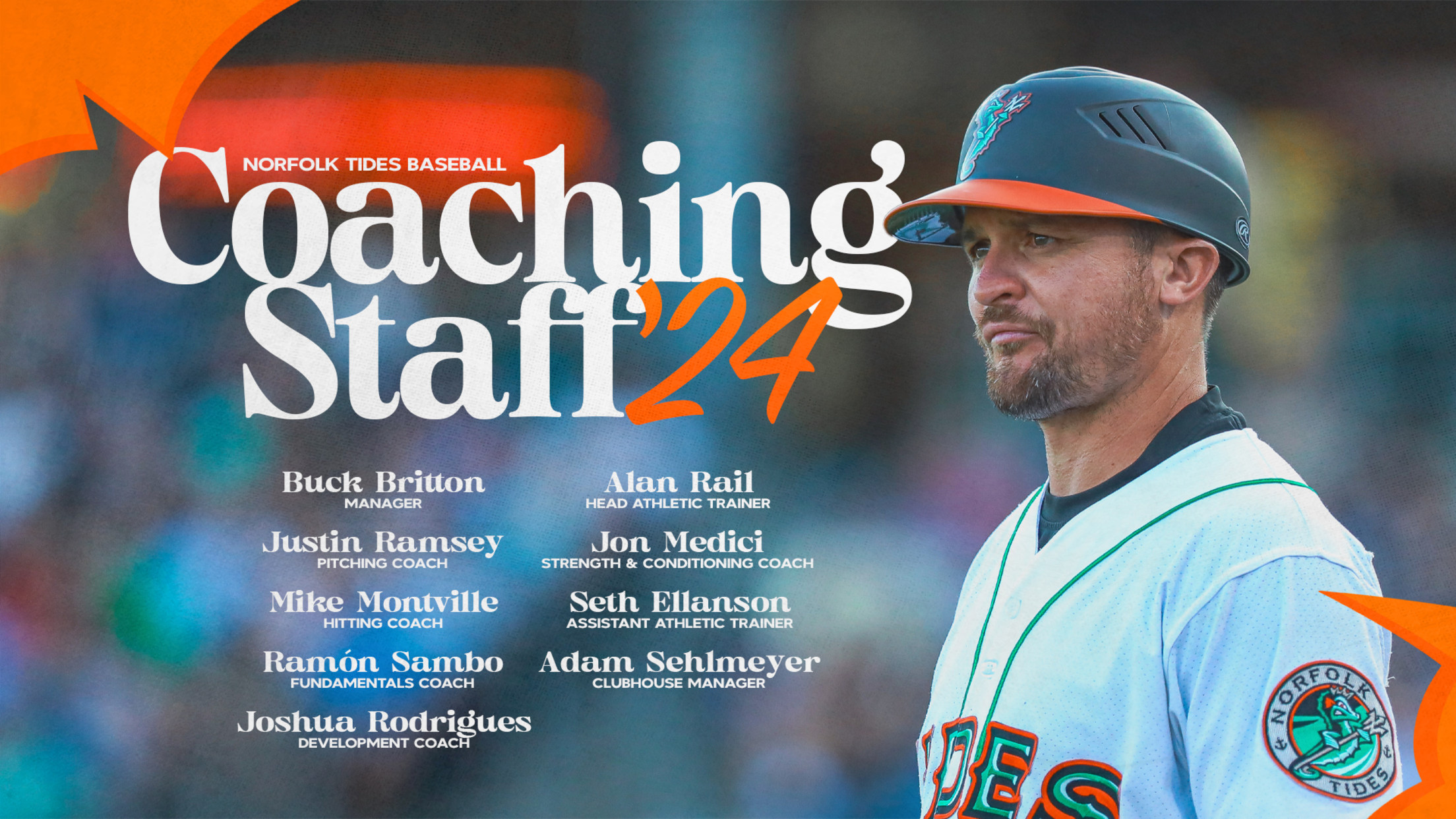 The Norfolk Tides and Baltimore Orioles today announced Norfolk’s field staff for the 2024 season. Manager Buck Britton and Pitching Coach Justin Ramsey will return for their third seasons with the Tides. Hitting Coach Mike Montville is entering his first season with the club. Ramón Sambo is returning to the Tides staff as the Fundamentals Coach, Alan Rail returns as the Athletic Trainer, Jon Medici will return as the club’s Strength and Conditioning Coach and Joshua Rodrigues enters his third season as a Development Coach. Seth Ellanson has been named Assistant Athletic Trainer. Adam Sehlmeyer returns as Norfolk’s Clubhouse Manager.
